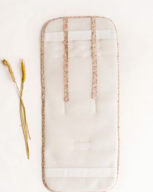Colchonetas universales para sillas de paseo. Mulliditas tienen una guata de grosor medio y el trasero en tejido Maya 3D acolchado y transpirable. Tienen 10 ojales para que puedan adaptarse a diferentes tipos de silla. Sistema de enganche mediante goma y lazos. Estampado flores Candela. TAMAÑO: 78 x 33,5cm. Exterior 100% algodón. Relleno y revés…