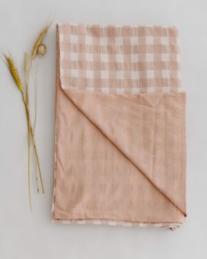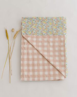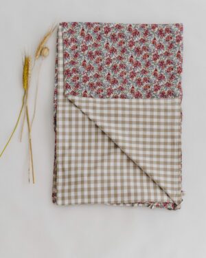 Funda nórdica para camas de 80/90cm. Abertura en la parte de abajo para introducir el relleno deseado, cierre mediante lazo. Confeccionado combinando Liberty Malen y Vichy Beige