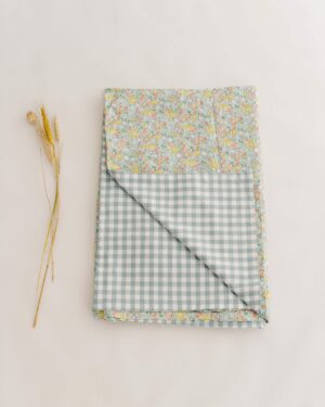 Funda nórdica para camas de 80/90cm. Abertura en la parte de abajo para introducir el relleno deseado, cierre mediante lazo. Confeccionado combinando Liberty Martine y Vichy Mint