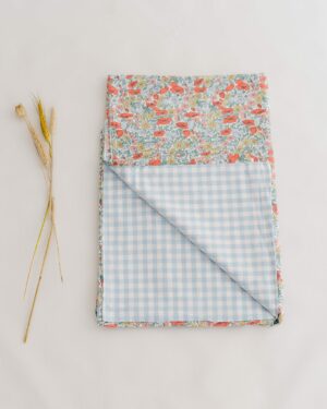 Funda nórdica para camas de 80/90cm. Abertura en la parte de abajo para introducir el relleno deseado, cierre mediante lazo. Confeccionado combinando Liberty y Vichy Azul