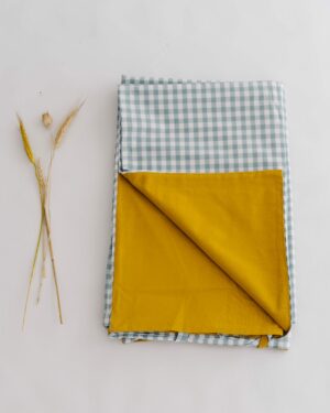 Funda nórdica para camas de 80/90cm. Abertura en la parte de abajo para introducir el relleno deseado, cierre mediante lazo. Confeccionado combinando Vichy Musgo y Mostaza