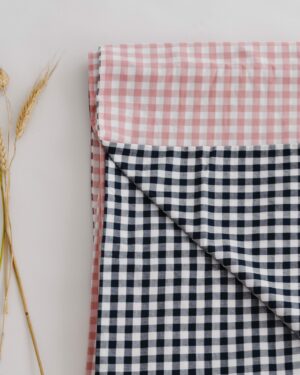Funda nórdica para camas de 80/90cm. Abertura en la parte de abajo para introducir el relleno deseado, cierre mediante lazo. Confeccionado combinando Vichy Rosa y Vichy Navy