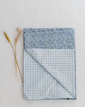 Funda nórdica para camas de 80/90cm. Abertura en la parte de abajo para introducir el relleno deseado, cierre mediante lazo. Confeccionado combinando Liberty Azuli y Vichy Azul