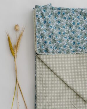 Funda nórdica para camas de 80/90cm. Abertura en la parte de abajo para introducir el relleno deseado, cierre mediante lazo. Confeccionado combinando Liberty Iñaki y Vichy Mint