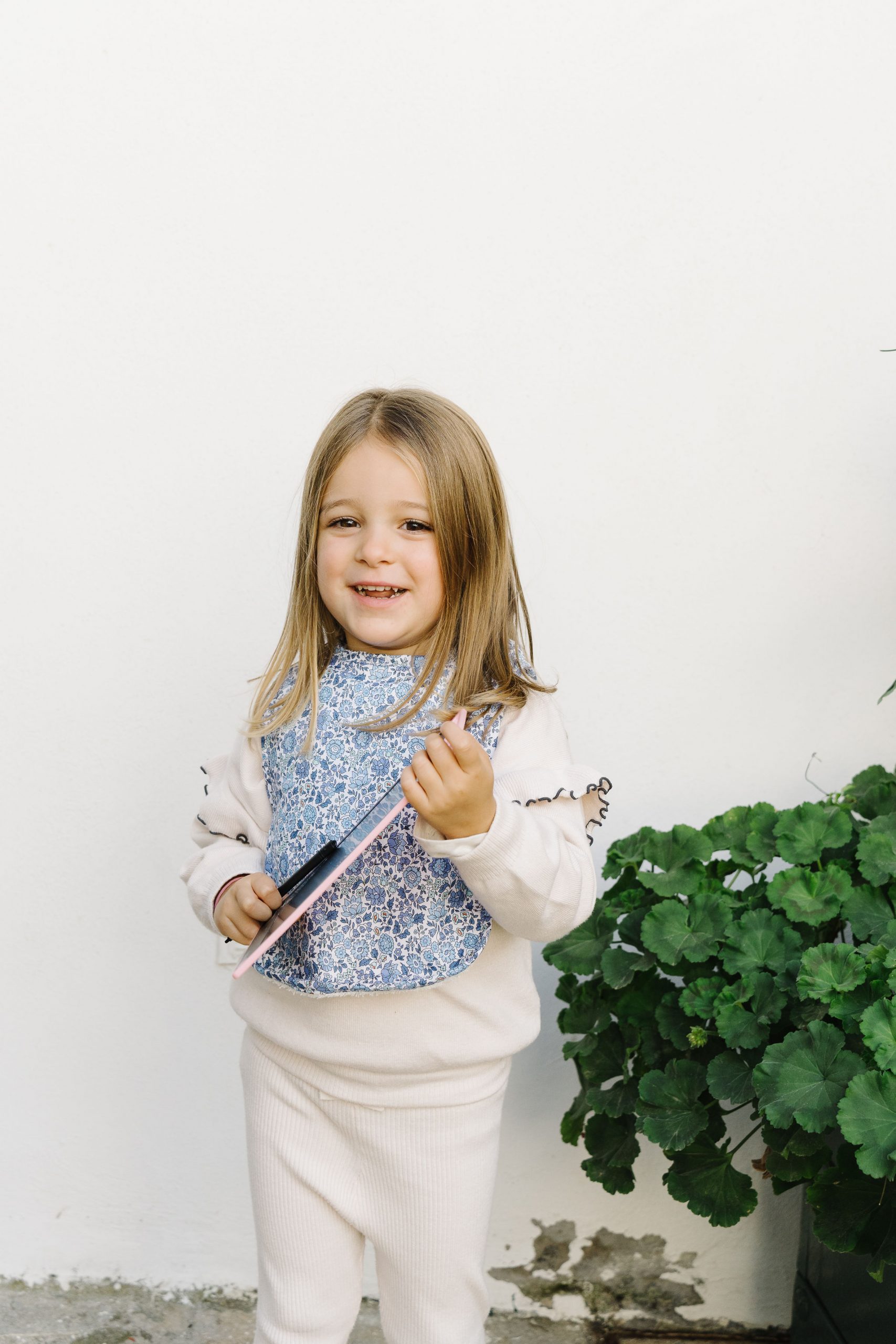 Baberos classic, con pechera doble. Se adaptan muy bien gracias a los lazos de los laterales. Cierre en el cuello mediante velcro. Interior Rizo toalla algodón. Talla desde los 6 meses hasta los 4 años.