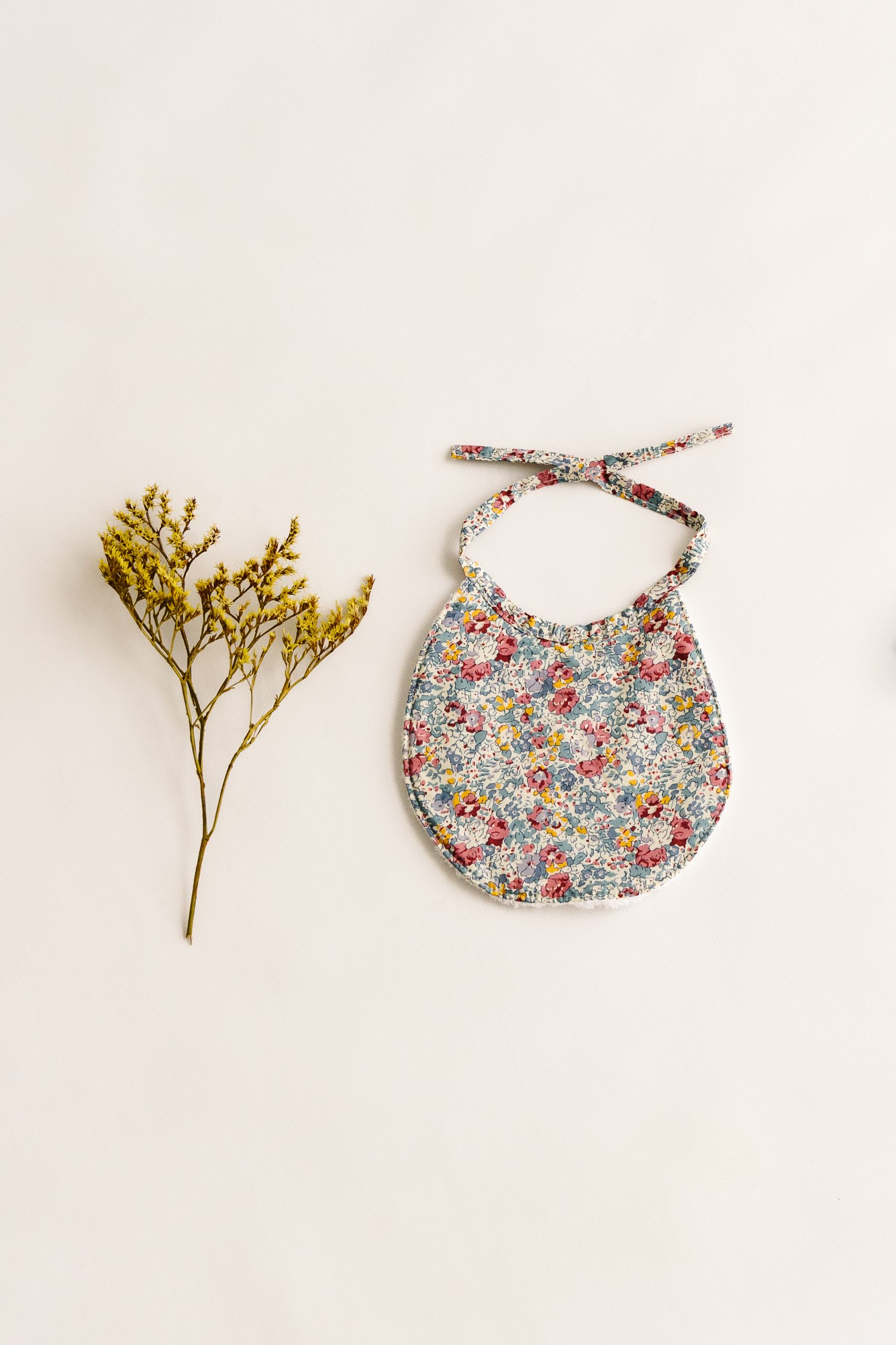 Babero de recien nacido con rizo de Algodón. Se atan al cuello mediante lazo. Talla hasta los 12 meses aprox. Tejido Matilda.