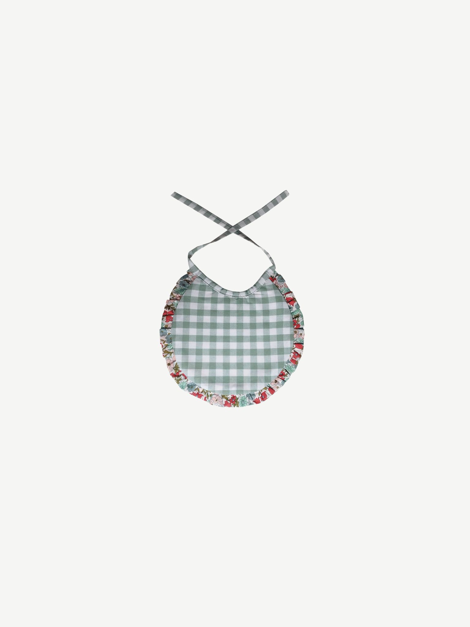 Babero Newborn Vichy Menta y Volante Liberty Lucía
