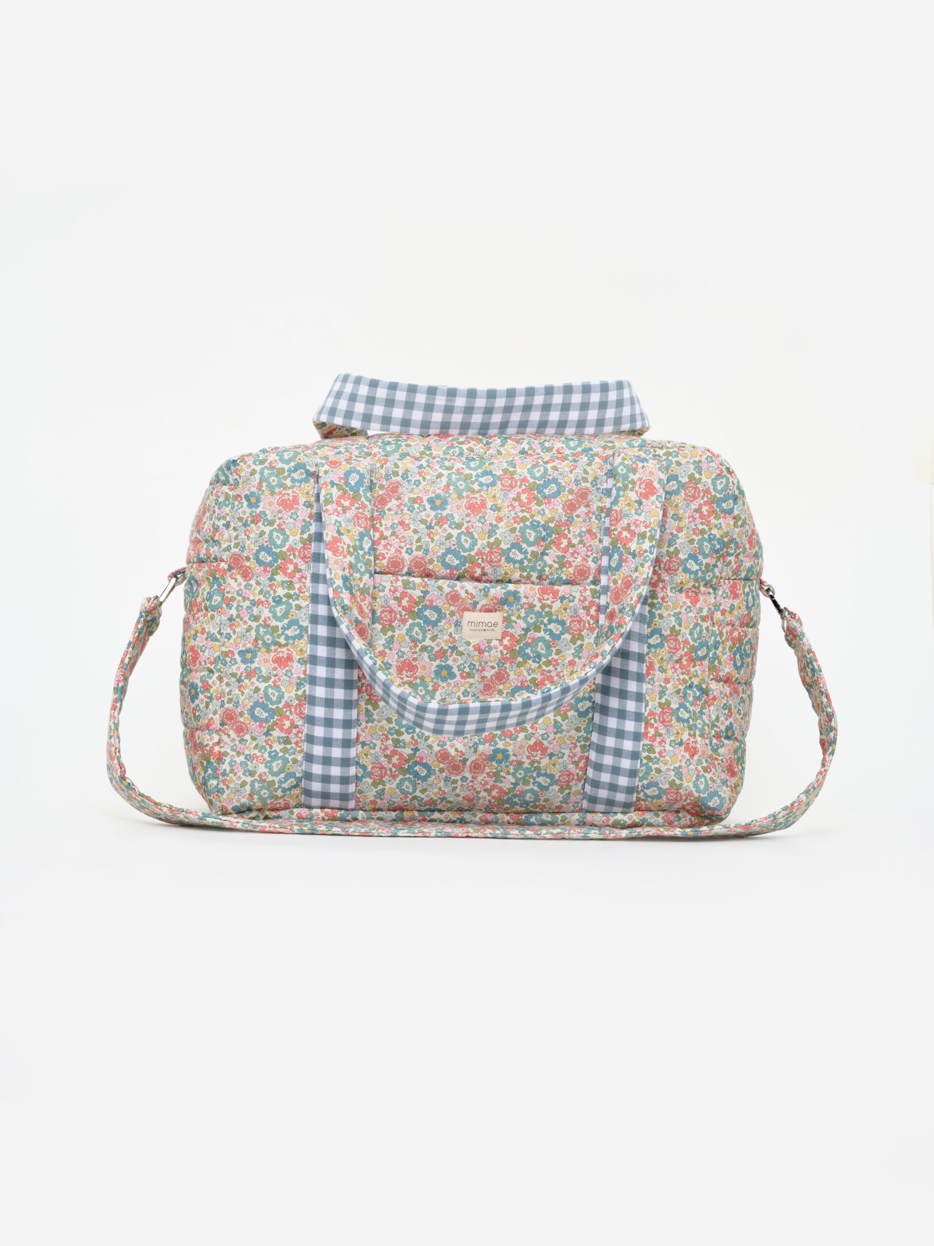 La bolsa de maternidad o fin de semana tiene un tamaño perfecto para guardar todo lo necesario para llevar al hospital o también para usarla en vuestros viajes en familia. Muy practica,tiene su doble asa enguatada y la tira bandolera de quitar y poner mediante garfios metálicos. Totalmente acolchada, tiene una guata de grosor medio para que mantenga bien la forma. Forrada con algodón 100%, tiene un bolsillo plastón en la parte exterior y cuatro en el interior.