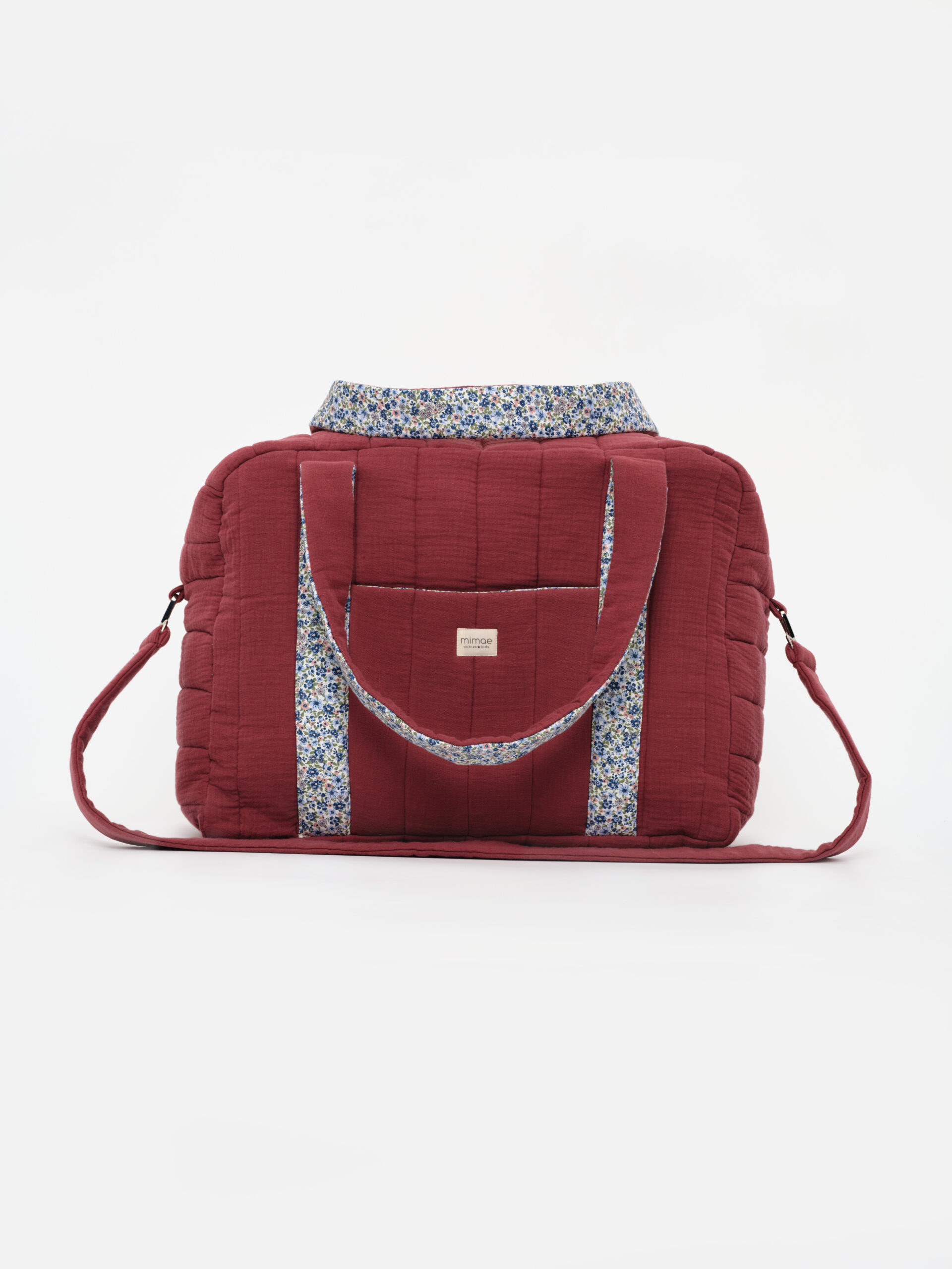 La bolsa de maternidad o fin de semana tiene un tamaño perfecto para guardar todo lo necesario para llevar al hospital o también para usarla en vuestros viajes en familia. Muy practica,tiene su doble asa enguatada y la tira bandolera de quitar y poner mediante garfios metálicos. Totalmente acolchada, tiene una guata de grosor medio para que mantenga bien la forma. Forrada con algodón 100%, tiene un bolsillo plastón en la parte exterior y cuatro en el interior.