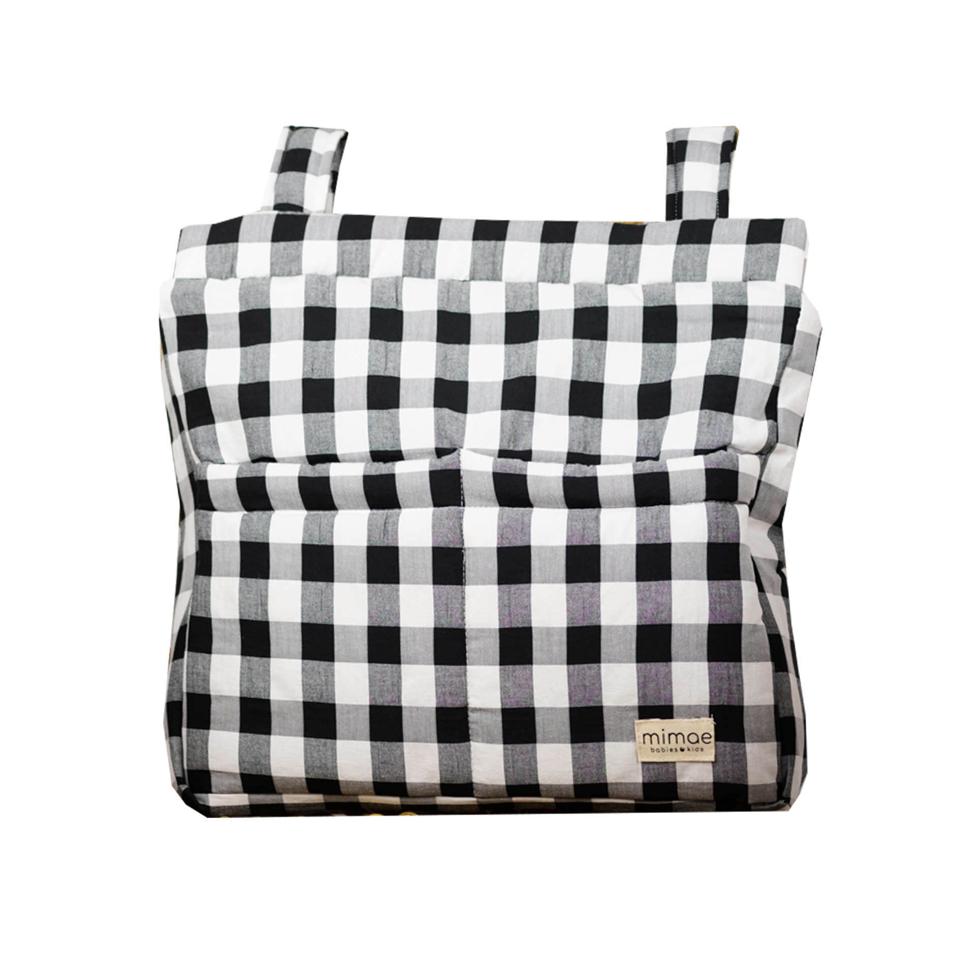 Nuestro bolso Big es ideal para guardar todo lo necesario cuando salimos de paseo. Acolchado con una guata de grosor medio está forrado con un algodón orgánico y se cierra con cremallera. Además entre el forro y la guata tiene un tejido impermeable para que el bolso no se empape si se derrama algún líquido. Tiene dos bolsillos en el exterior y otros dos en el interior para llevar todo bien organizado. Se engancha al carro mediante dos asas con corchetes.