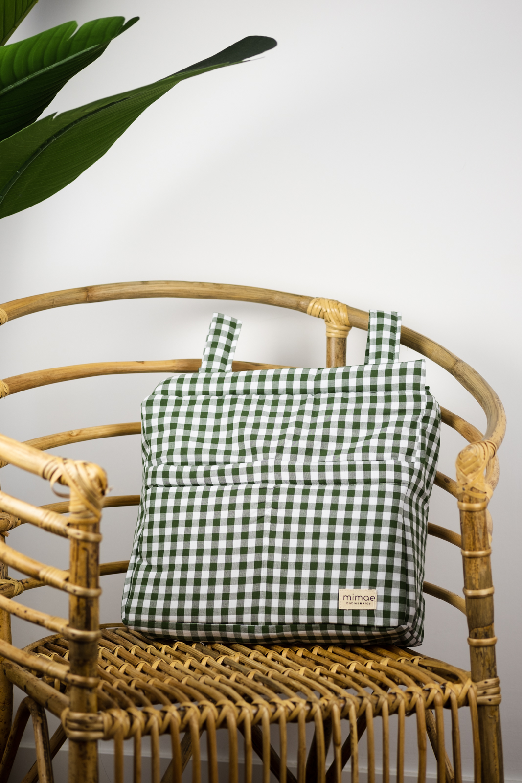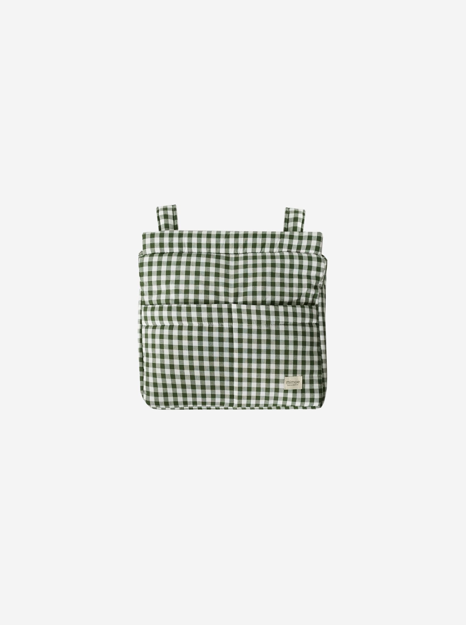 Nuestro bolso Big es ideal para guardar todo lo necesario cuando salimos de paseo. Acolchado con una guata de grosor medio está forrado con un algodón orgánico y se cierra con cremallera. Además entre el forro y la guata tiene un tejido impermeable para que el bolso no se empape si se derrama algún líquido. Tiene dos bolsillos en el exterior y otros dos en el interior para llevar todo bien organizado. Se engancha al carro mediante dos asas con corchetes.