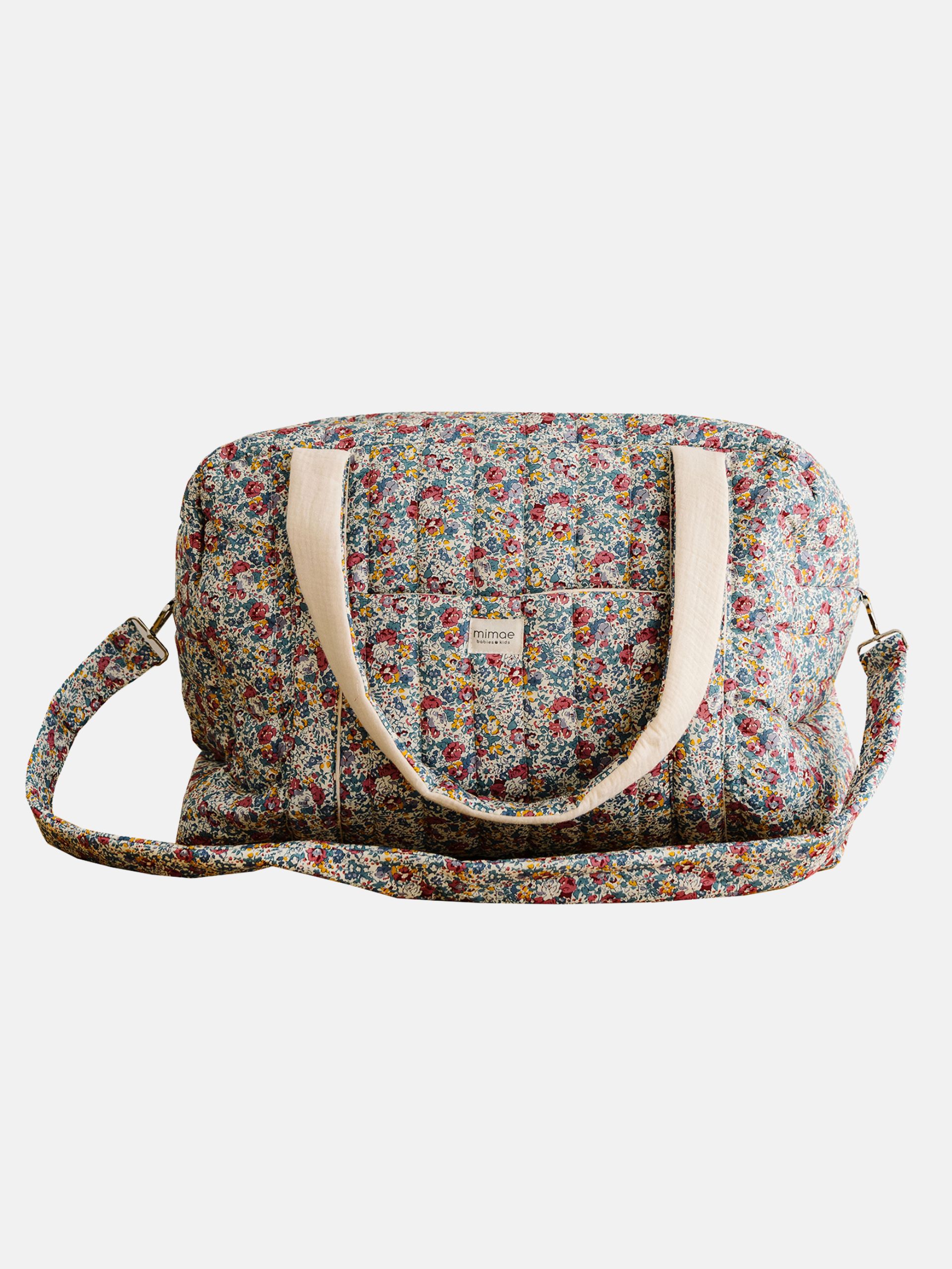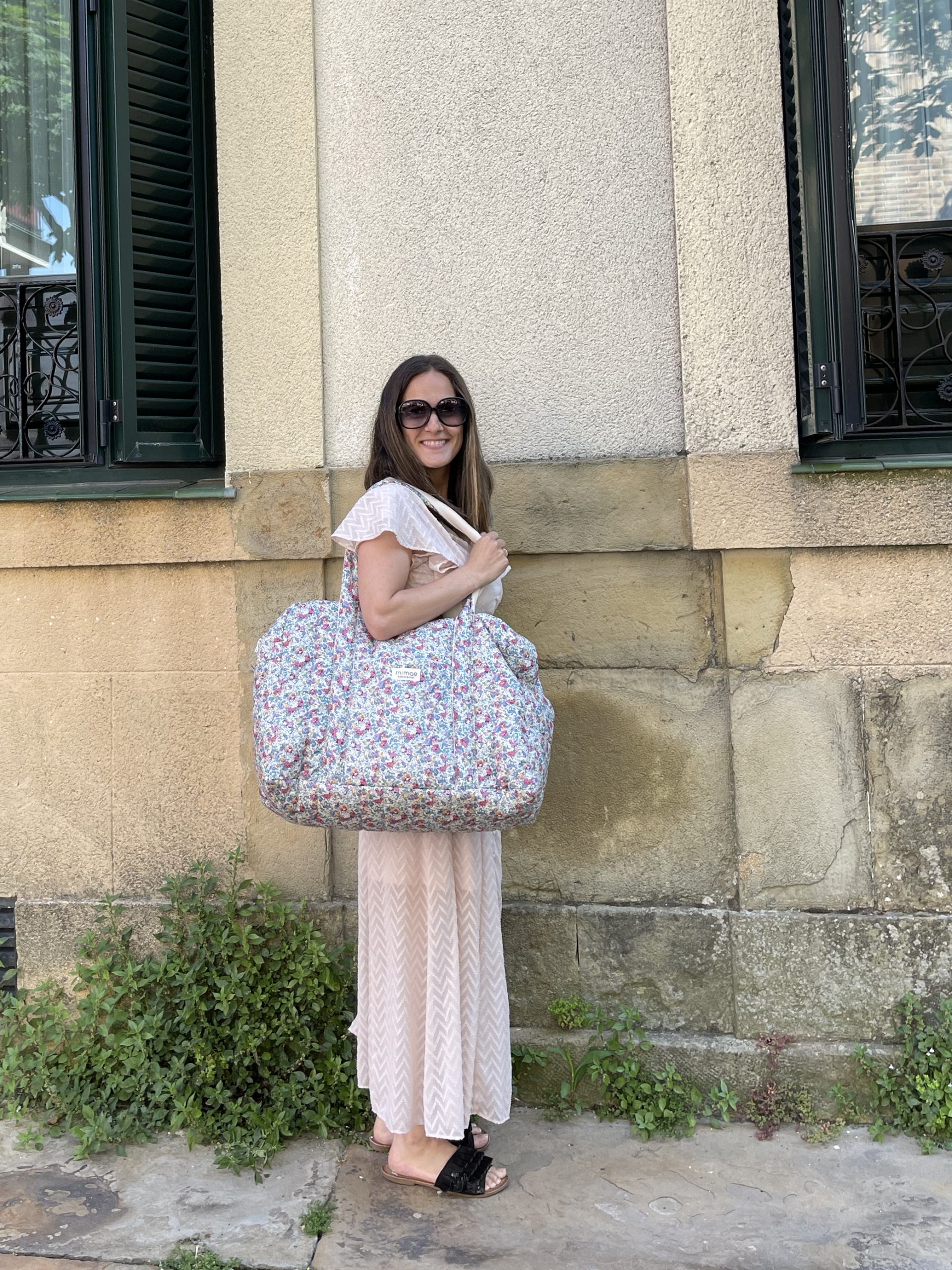 Bolsa de maternidad o fin de semana tiene un tamaño perfecto para guardar todo lo necesario para llevar al hospital o también para usarla en vuestros viajes en familia. Muy practica gracias a su doble asa enguatada y la tira bandolera de quitar y poner mediante garfios metálicos. Totalmente acolchada, tiene una guata de grosor medio para que mantenga bien la forma. Forrada con algodón 100%, tiene un bolsillo platón en la parte exterior y cuatro en el interior. Exterior en estampado Matilda, asas y forro en bambula Ecru.