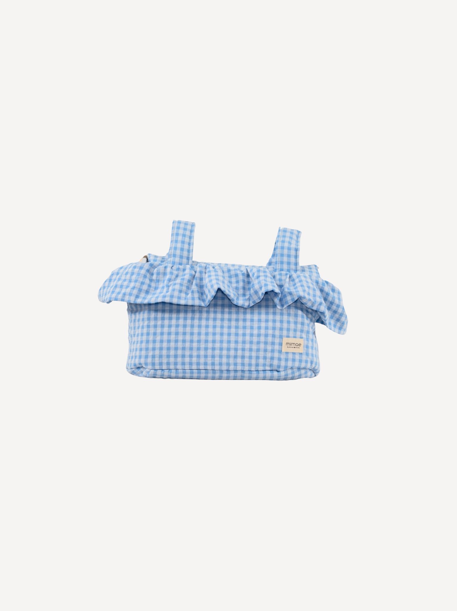 Nuestro bolso mini vichy dream con volante es super cómodo y practico para llevar lo imprescindible. Acolchados con una guata de grosor medio, están forrados con algodón orgánico y se cierra con cremallera. Además entre el forro y la guata tiene un tejido impermeable para que el bolso no se empape si se derrama algún líquido. Tejido vichy dream.