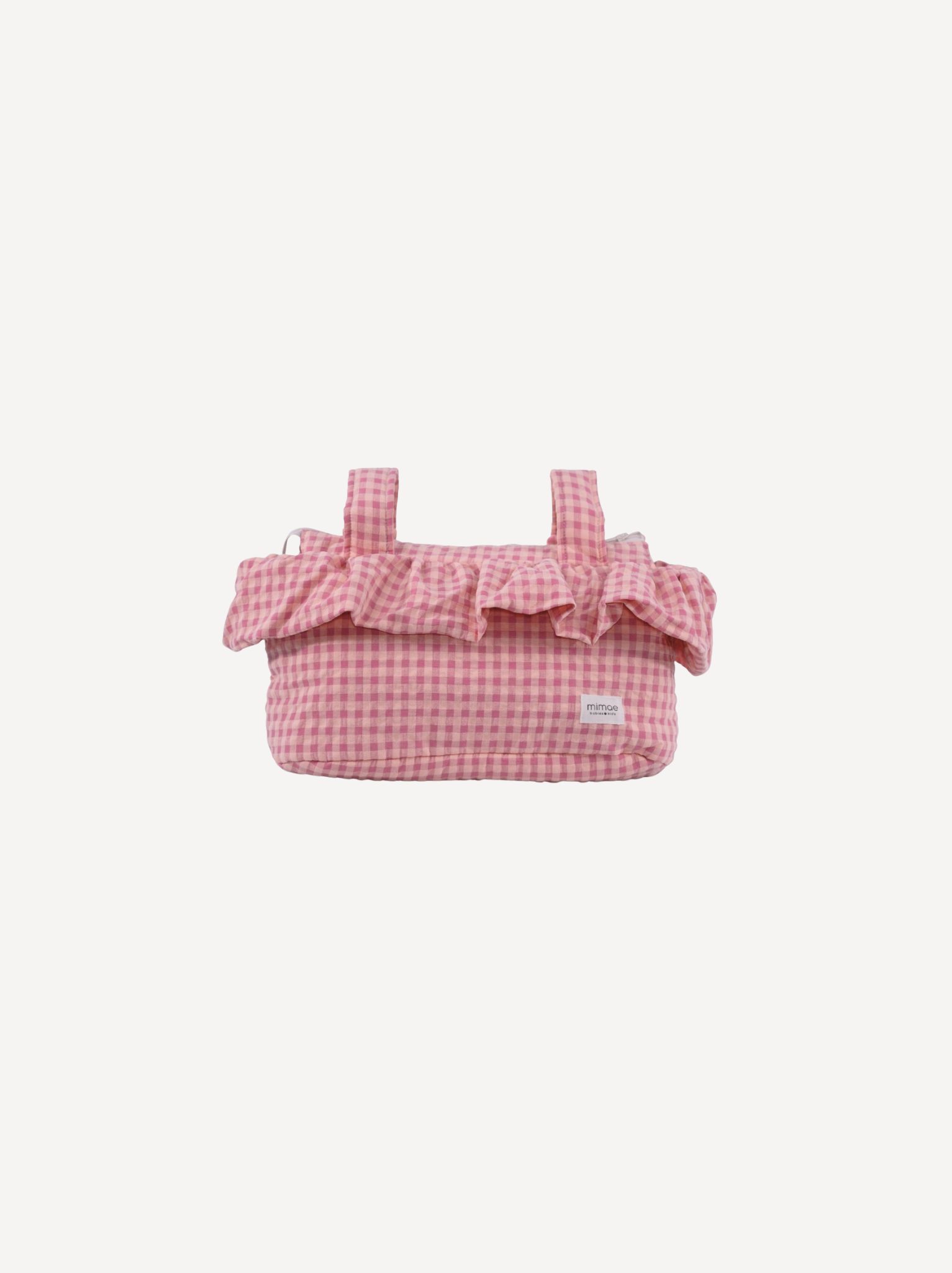Nuestro bolso mini con volante vichy strawberry es super cómodo y practico para llevar lo imprescindible. Acolchados con una guata de grosor medio, están forrados con algodón orgánico y se cierra con cremallera. Además entre el forro y la guata tiene un tejido impermeable para que el bolso no se empape si se derrama algún líquido. Tejido vichy strawberry.