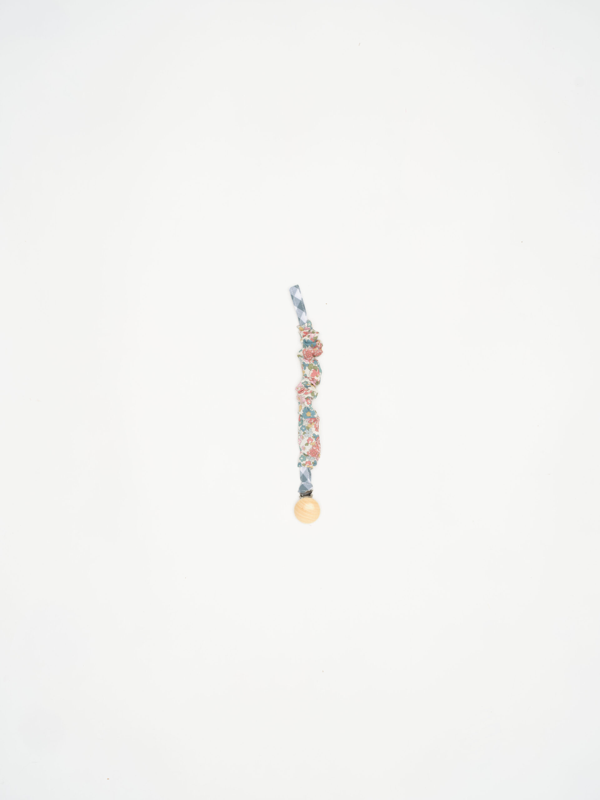 Chupetero confeccionado en tejido de algodón con un clip de madera natural. Súper practico para tener siempre el chupete cerca de tu bebé.