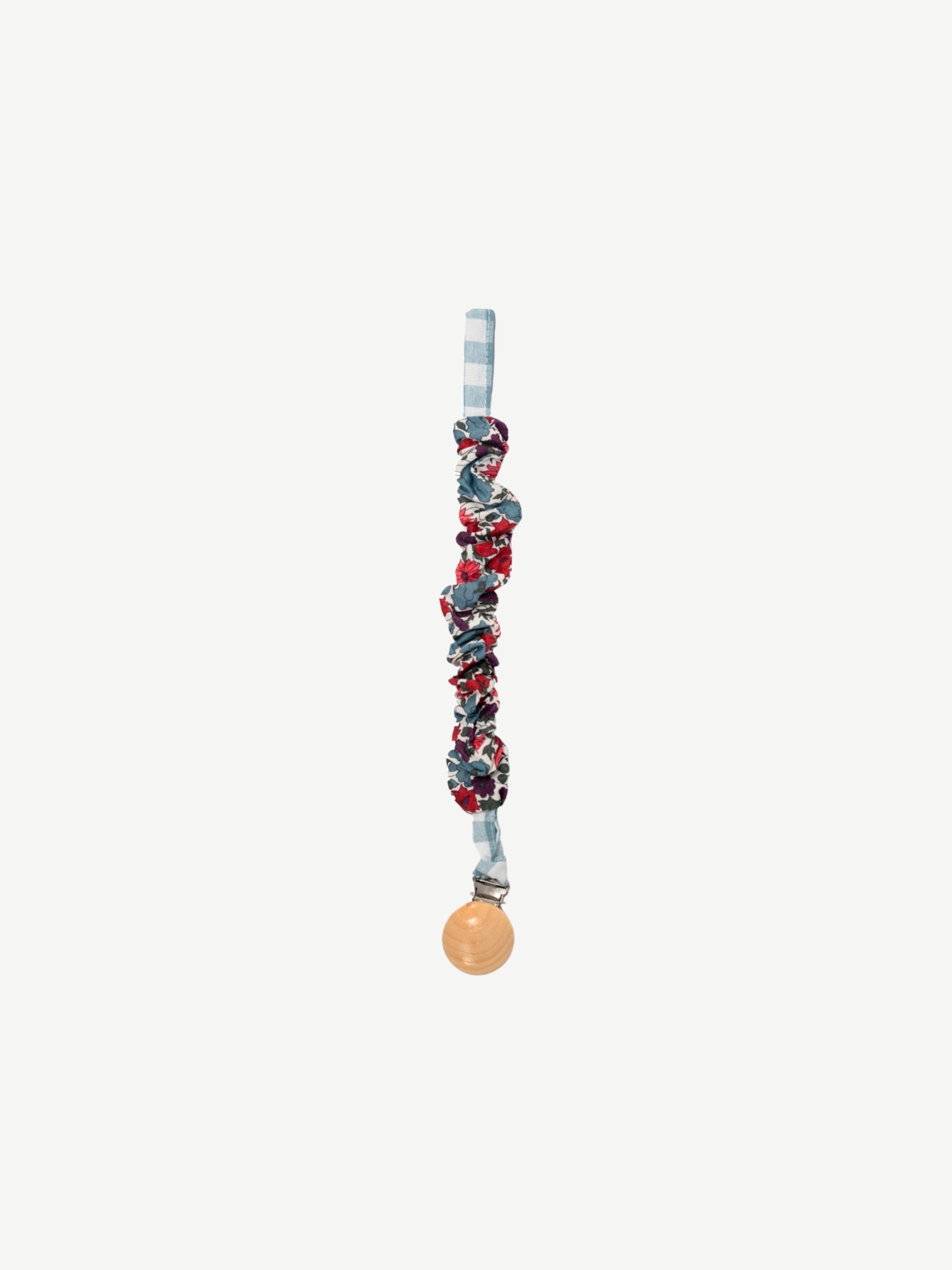 Chupetero confeccionado en tejido de algodón con un clip de madera natural. Súper practico para tener siempre el chupete cerca de tu bebé.