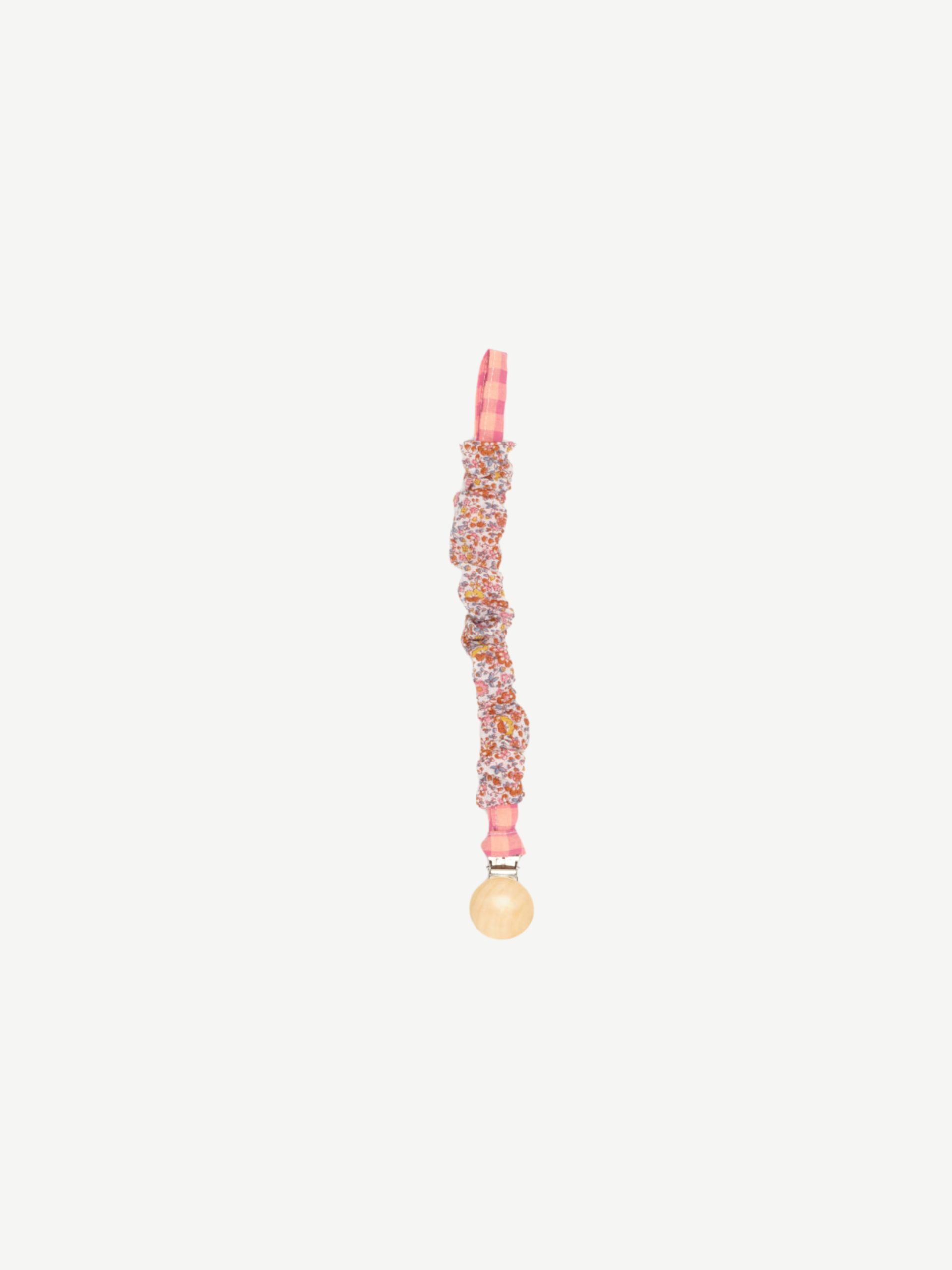 Chupetero confeccionado en tejido de algodón con un clip de madera natural. Súper practico para tener siempre el chupete cerca de tu bebé.