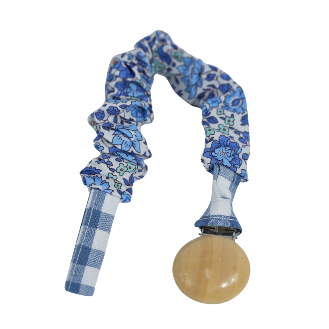 Chupetero confeccionado en tejido de algodón con un clip de madera natural. Súper practico para tener siempre el chupete cerca de tu bebé.