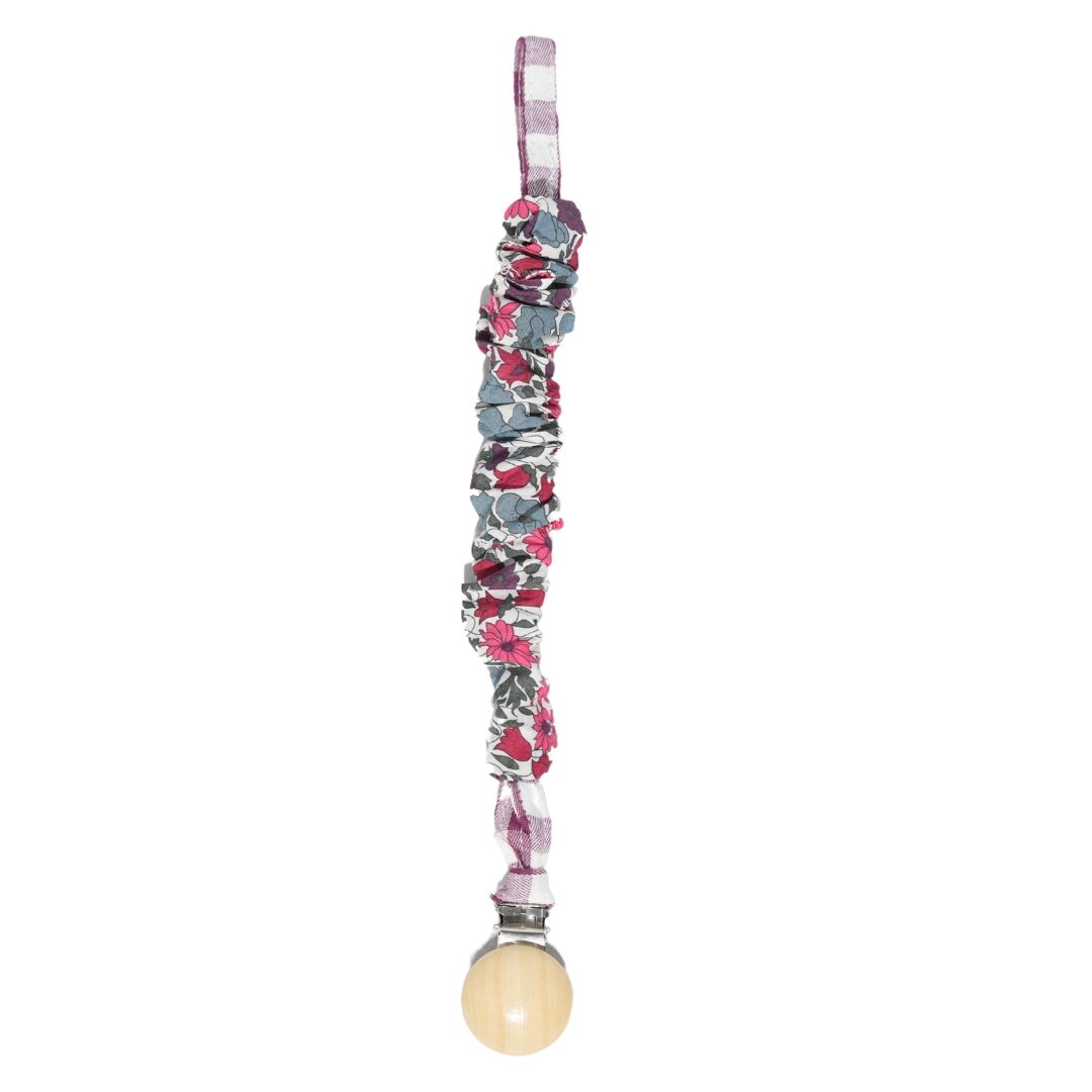 Chupetero confeccionado en tejido de algodón con un clip de madera natural. Súper practico para tener siempre el chupete cerca de tu bebé.