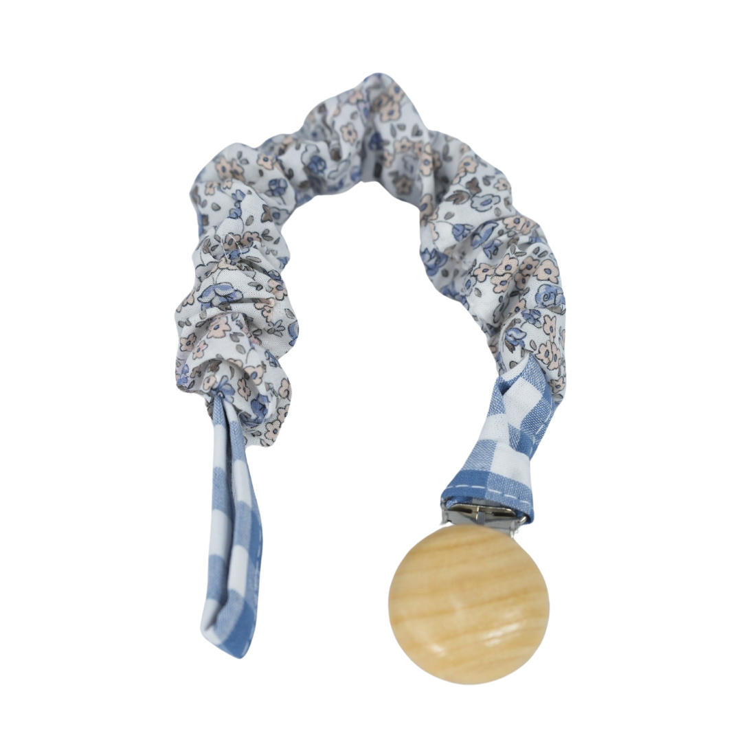 Chupetero confeccionado en tejido de algodón con un clip de madera natural. Súper practico para tener siempre el chupete cerca de tu bebé.