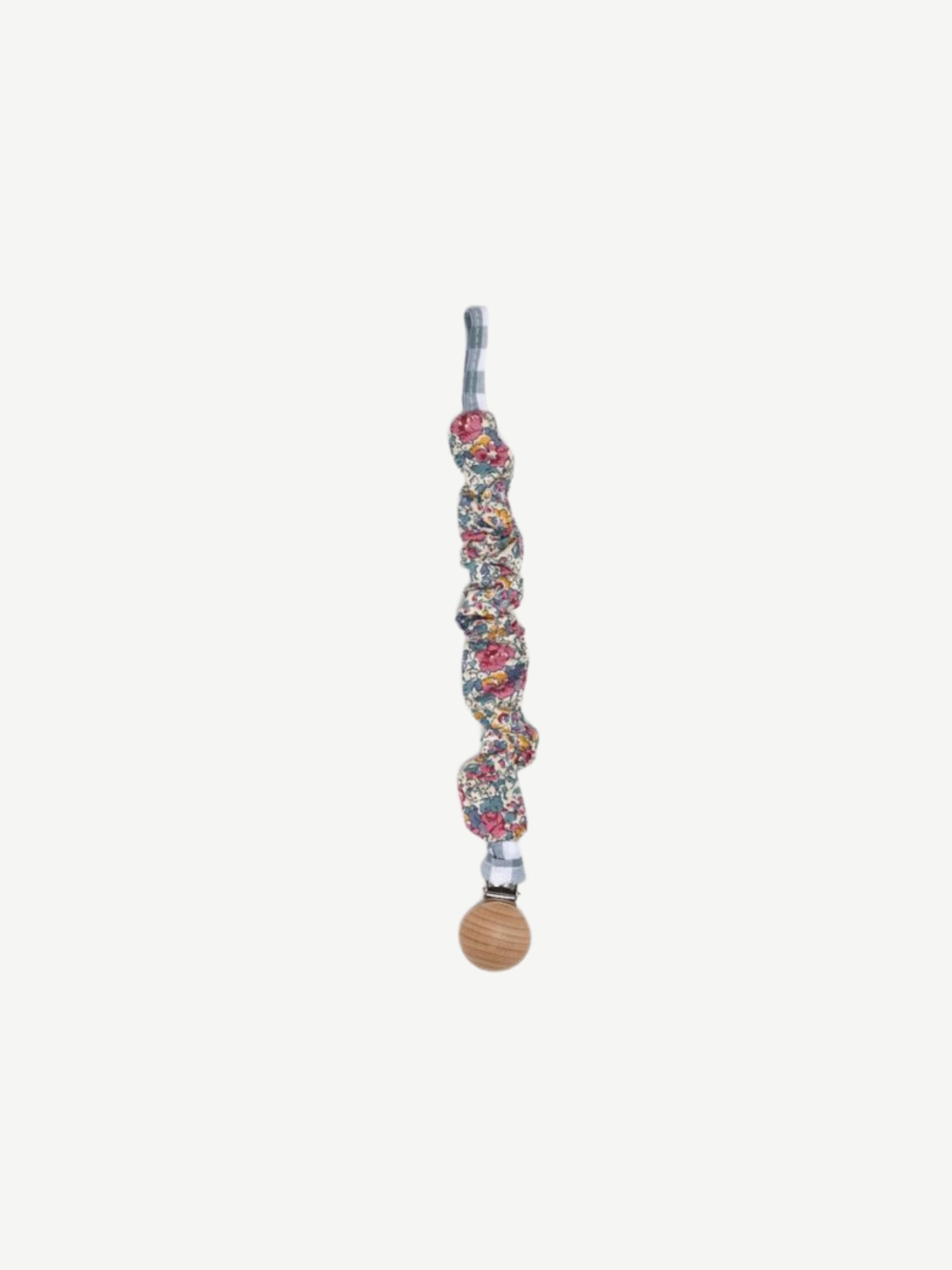 Chupetero confeccionado en tejido de algodón con un clip de madera natural. Súper practico para tener siempre el chupete cerca de tu bebé.