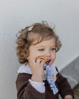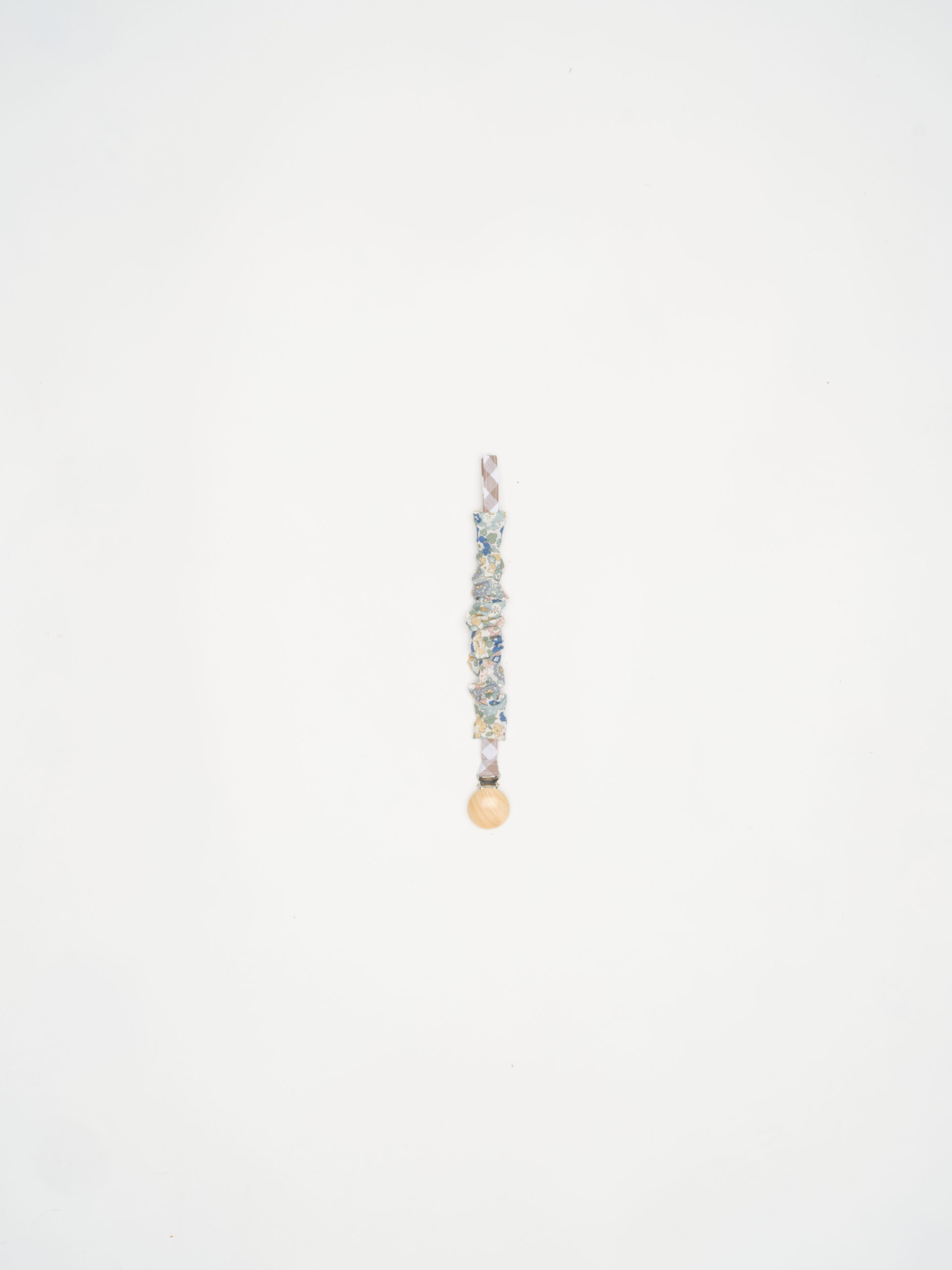 Chupetero confeccionado en tejido de algodón con un clip de madera natural. Súper practico para tener siempre el chupete cerca de tu bebé.