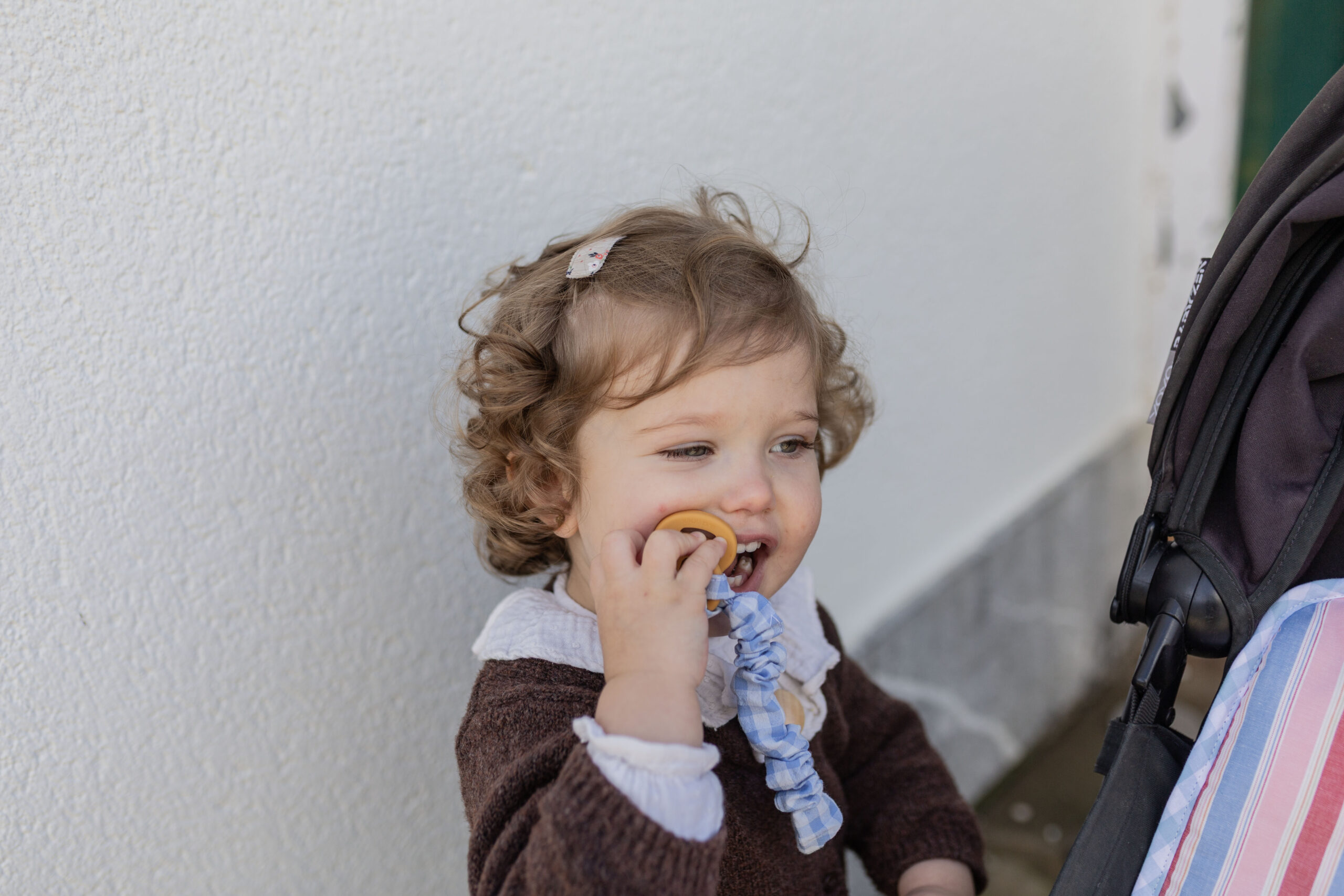 Chupetero confeccionado en tejido de algodón con un clip de madera natural. Súper practico para tener siempre el chupete cerca de tu bebé.