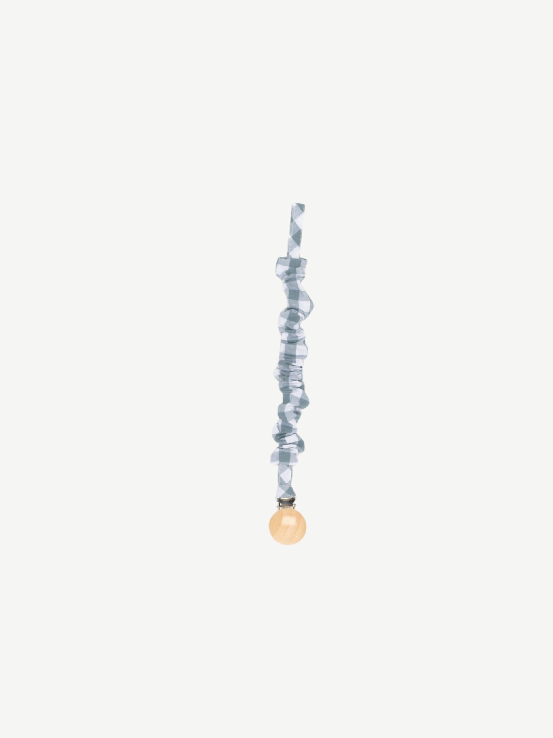 Chupetero confeccionado en tejido de algodón con un clip de madera natural. Súper practico para tener siempre el chupete cerca de tu bebé.