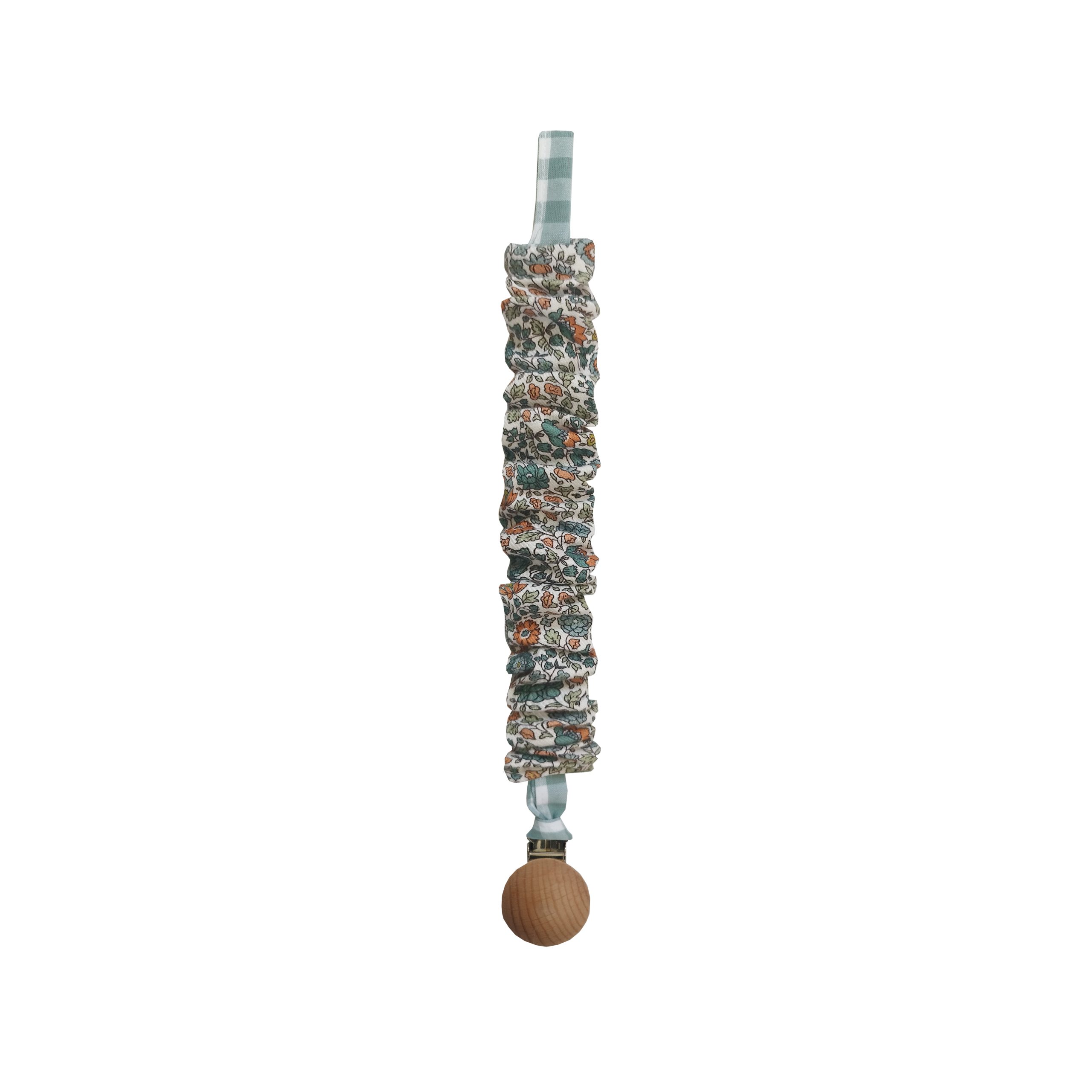 Chupetero confeccionado en tejido de algodón con un clip de madera natural. Súper practico para tener siempre el chupete cerca de tu bebé.