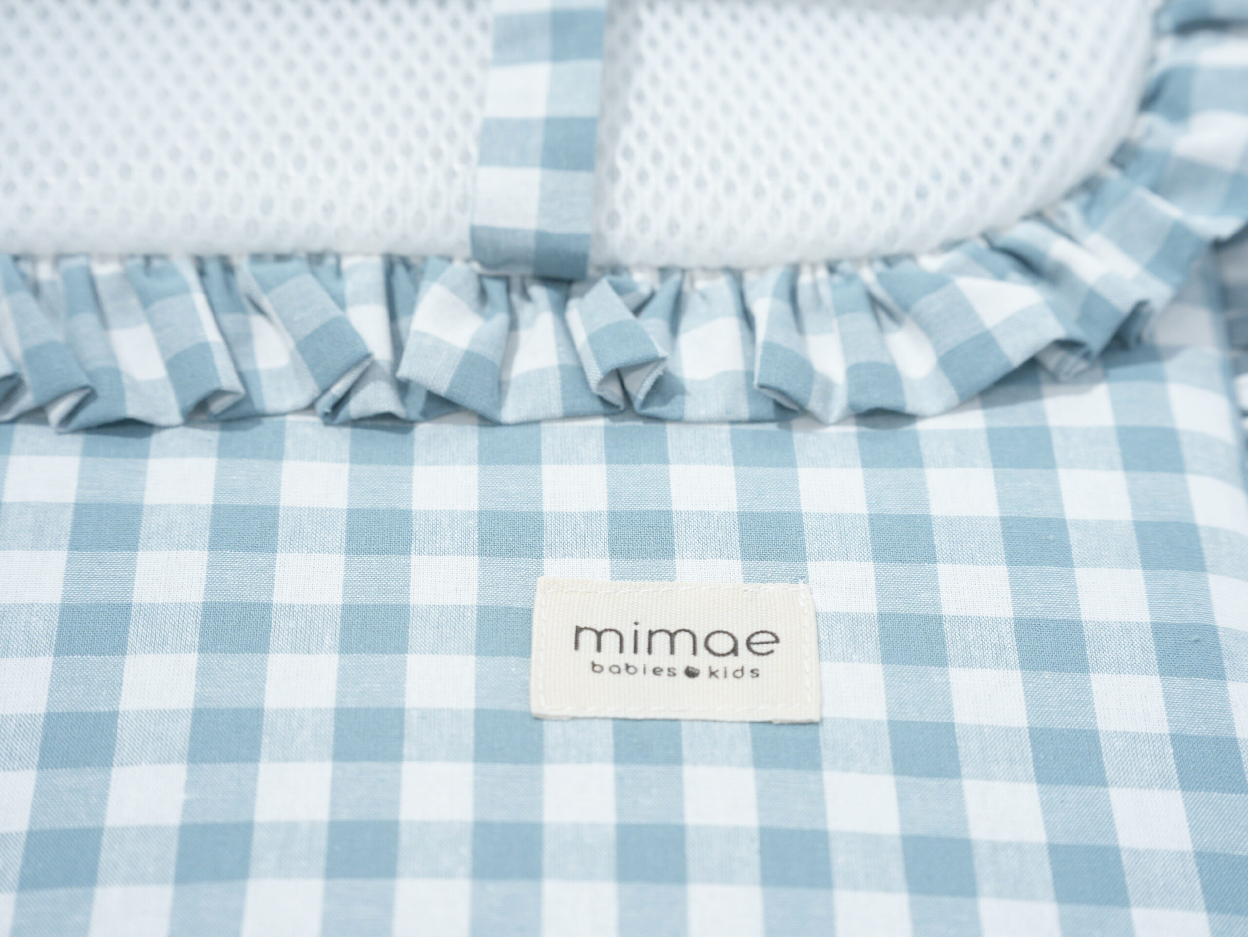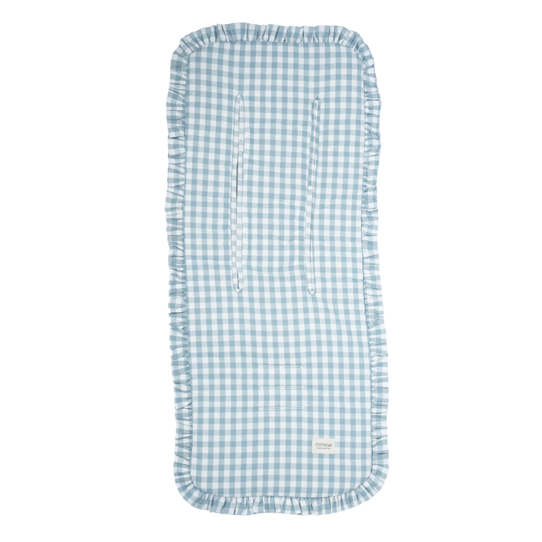 Colchoneta universal para sillas de paseo. Mulliditas tienen una guata de grosor medio y el trasero en tejido Maya 3D acolchado y transpirable. Tienen dos ojales verticales y tres ojales horizontales para que puedan adaptarse a diferentes tipos de silla. Sistema de enganche mediante goma y lazos. Estampado vichy menta con volante vichy menta.