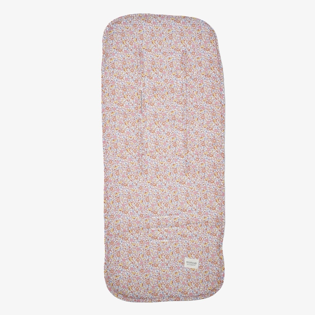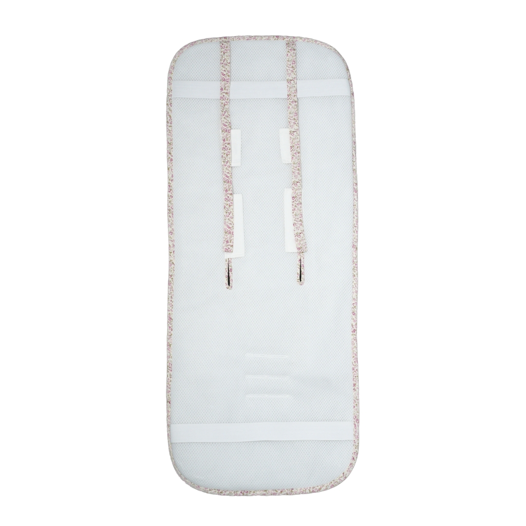 Colchoneta universal para sillas de paseo. Mulliditas tienen una guata de grosor medio y el trasero en tejido Maya 3D acolchado y transpirable. Tienen dos ojales verticales y tres ojales horizontales  para que puedan adaptarse a diferentes tipos de silla. Sistema de enganche mediante goma y lazos. Estampado Laida.