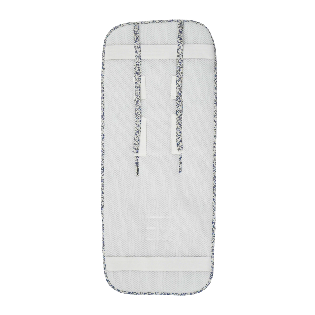 Colchonetas universales para sillas de paseo. Mulliditas tienen una guata de grosor medio y el trasero en tejido Maya 3D acolchado y transpirable. Tienen 10 ojales para que puedan adaptarse a diferentes tipos de silla. Sistema de enganche mediante goma y lazos. Estampado Liberty Paul