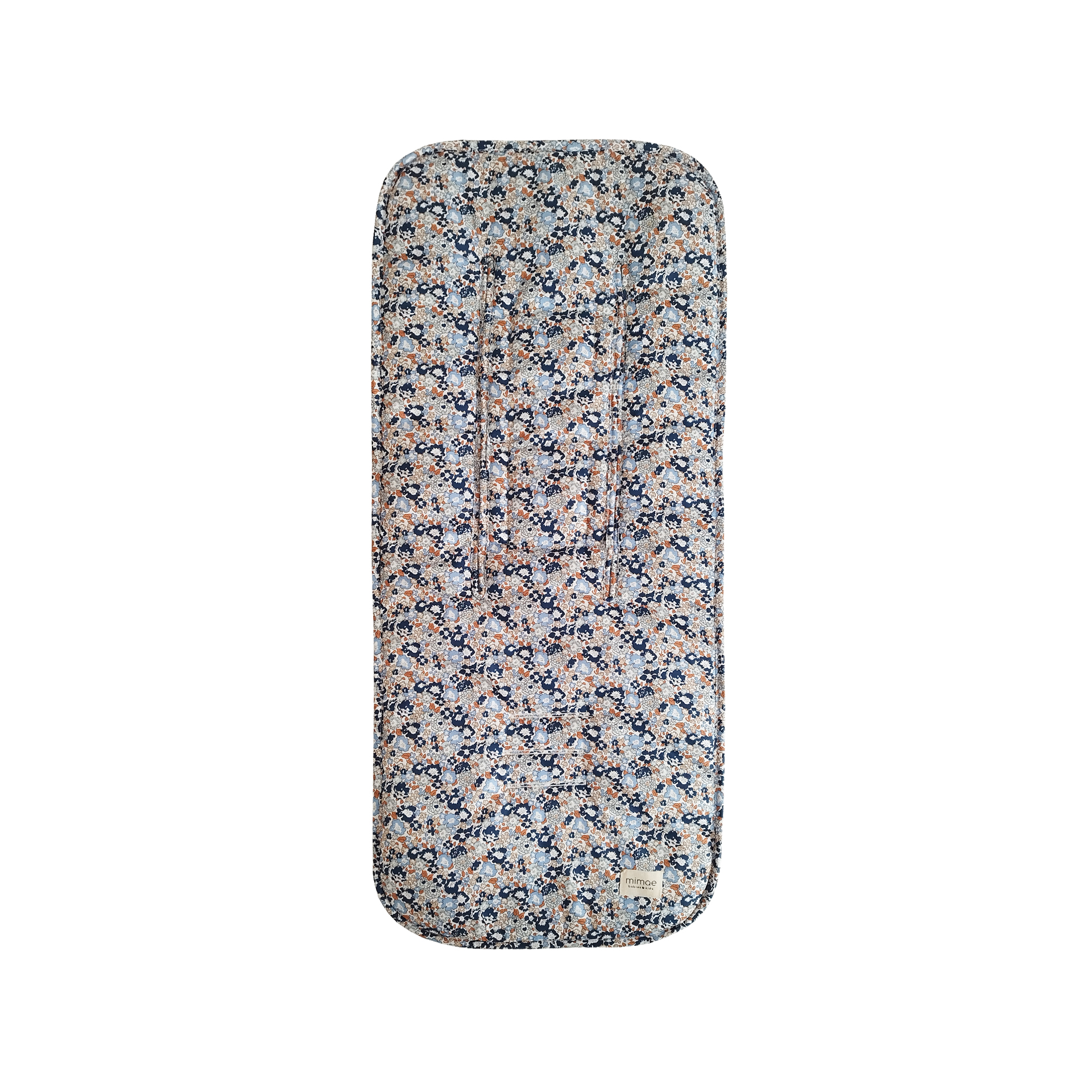 Colchonetas universales para sillas de paseo. Mulliditas tienen una guata de grosor medio y el trasero en tejido Maya 3D acolchado y transpirable. Tiene 2 ojales verticales de tela y 3 ojales para que puedan adaptarse a diferentes tipos de silla. Sistema de enganche mediante goma y lazos. Estampado Liberty Telmo.