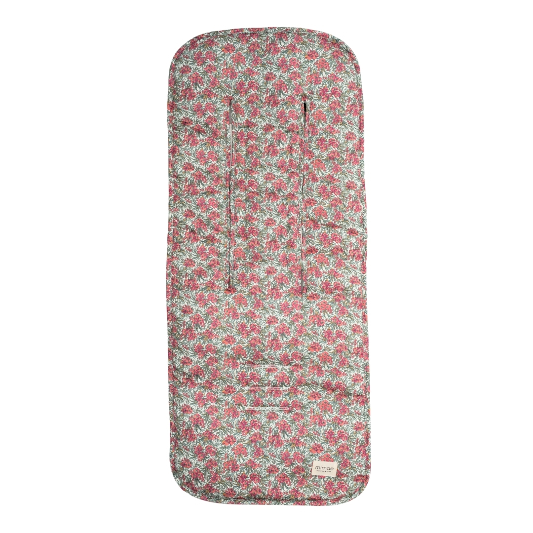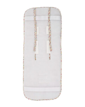Colchonetas universales para sillas de paseo. Mulliditas tienen una guata de grosor medio y el trasero en tejido Maya 3D acolchado y transpirable. Tienen 10 ojales para que puedan adaptarse a diferentes tipos de silla. Sistema de enganche mediante goma y lazos. Estampado flores Malen.