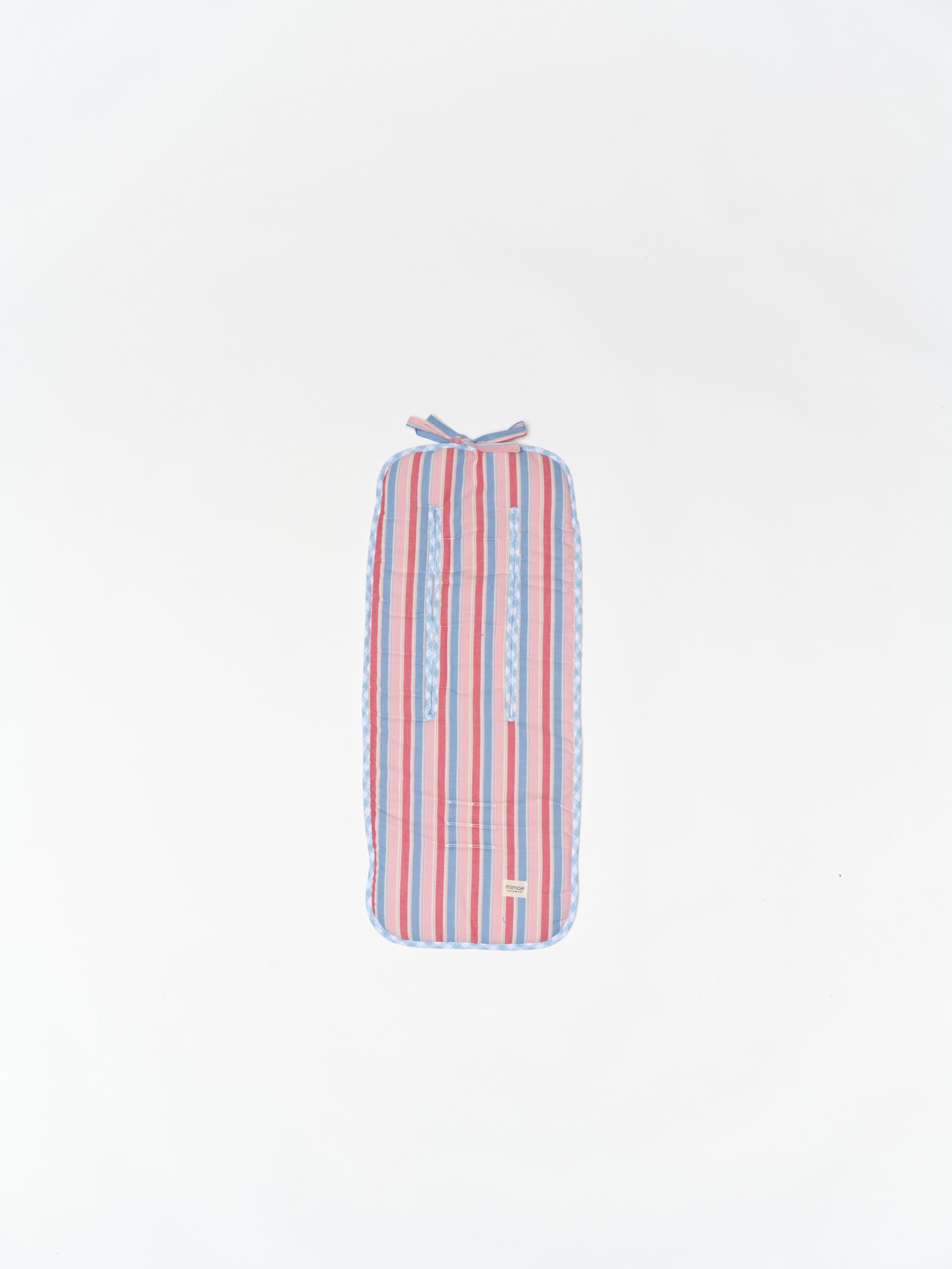 Colchoneta universal para sillas de paseo. Mulliditas tienen una guata de grosor medio y el trasero en tejido Maya 3D acolchado y transpirable. Tienen dos ojales verticales y tres ojales horizontales  para que puedan adaptarse a diferentes tipos de silla. Sistema de enganche mediante goma y lazos. Estampado rayas.