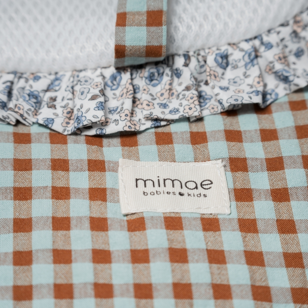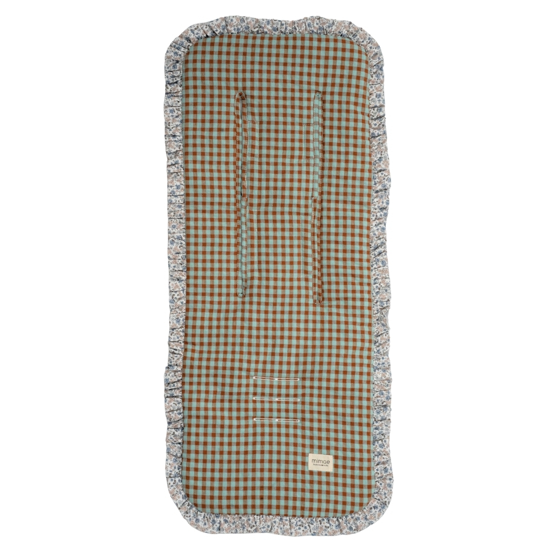 Colchoneta universal para sillas de paseo. Mulliditas tienen una guata de grosor medio y el trasero en tejido Maya 3D acolchado y transpirable. Tienen dos ojales verticales y tres ojales horizontales  para que puedan adaptarse a diferentes tipos de silla. Sistema de enganche mediante goma y lazos. Estampado vichy autumn con volante Luken.
