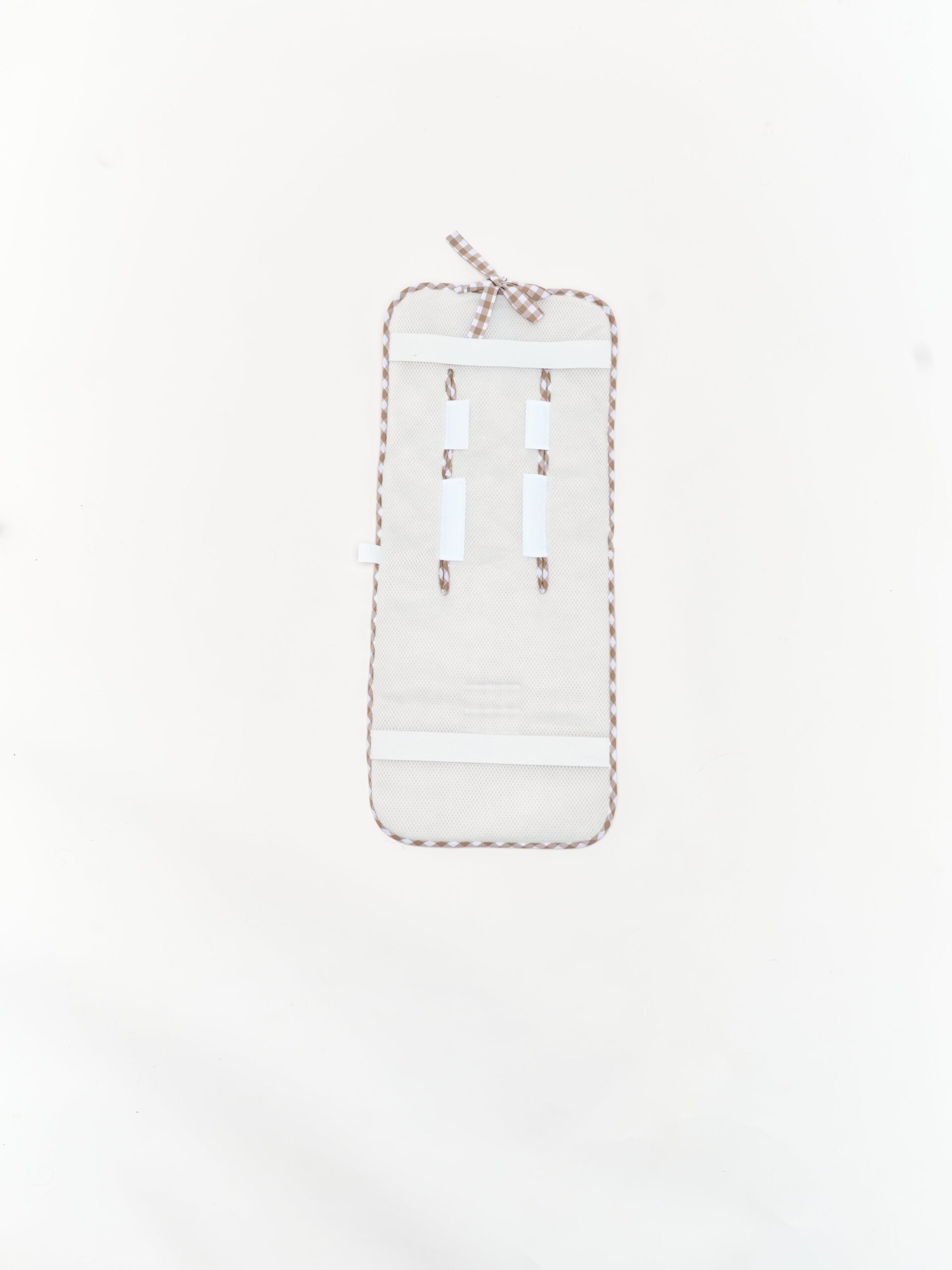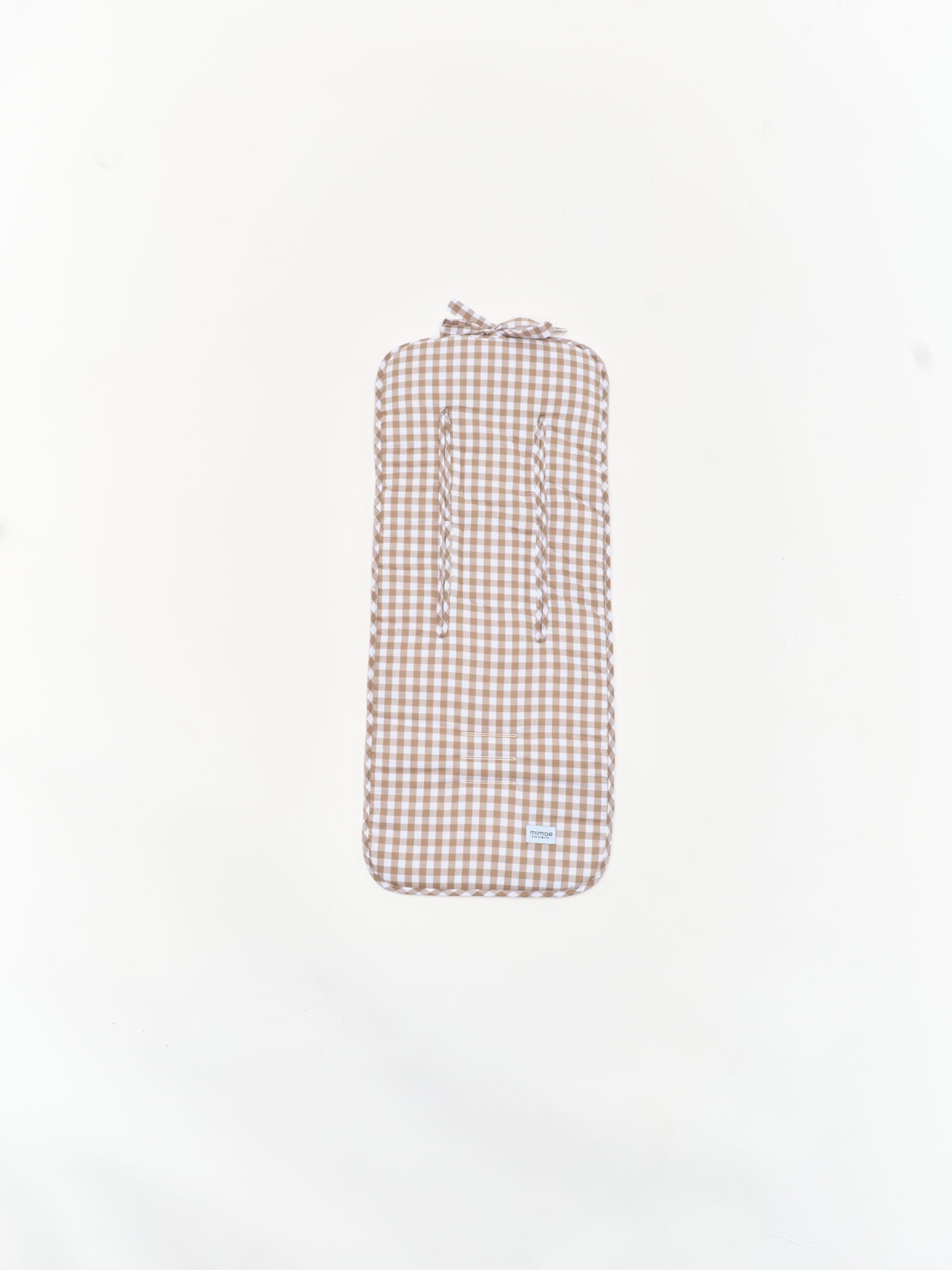 Colchoneta universal para sillas de paseo. Mulliditas tienen una guata de grosor medio y el trasero en tejido Maya 3D acolchado y transpirable. Tienen dos ojales verticales y tres ojales horizontales  para que puedan adaptarse a diferentes tipos de silla. Sistema de enganche mediante goma y lazos. Estampado vichy beige.