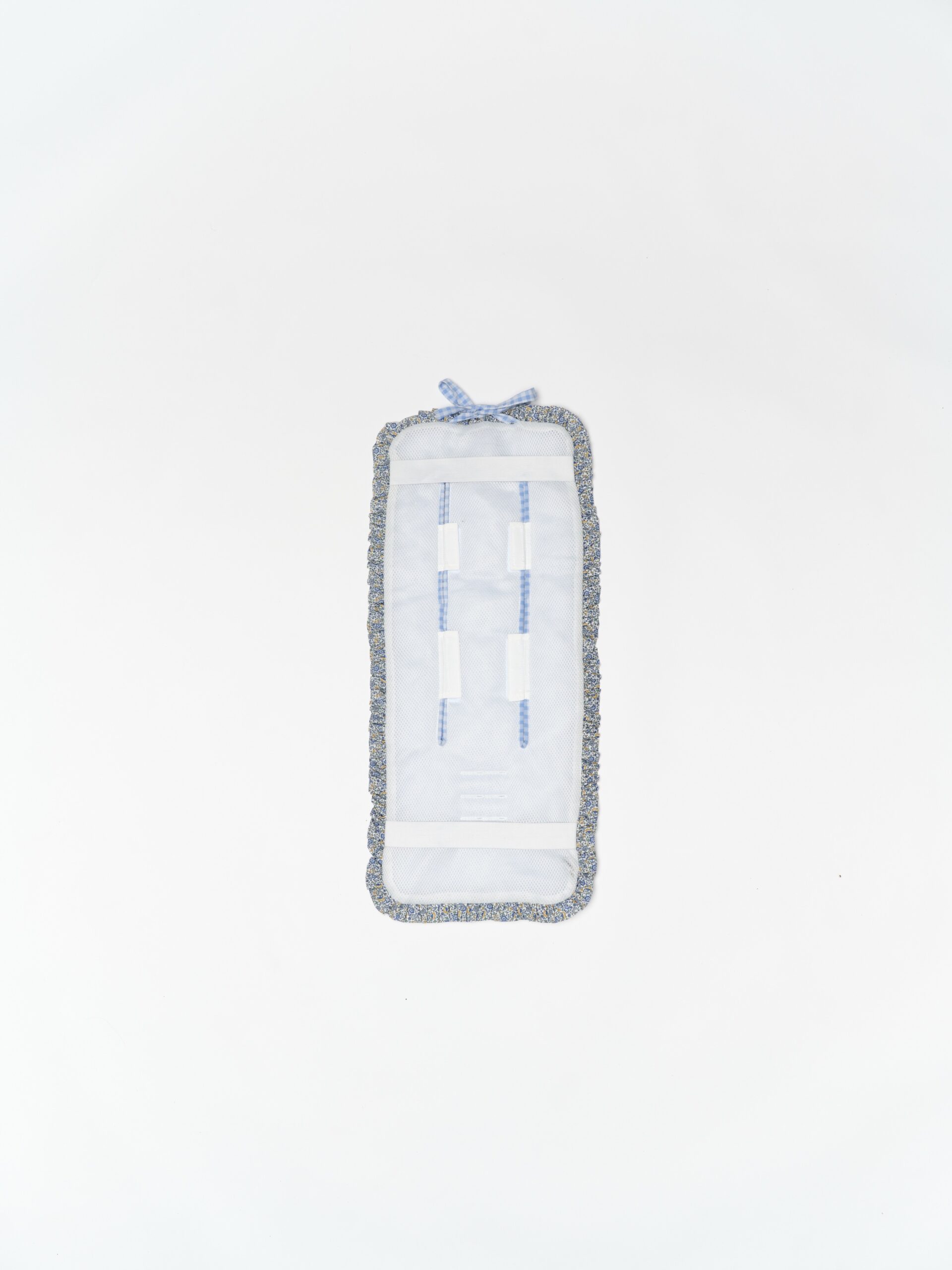 Colchoneta universal para sillas de paseo. Mulliditas tienen una guata de grosor medio y el trasero en tejido Maya 3D acolchado y transpirable. Tienen dos ojales verticales y tres ojales horizontales  para que puedan adaptarse a diferentes tipos de silla. Sistema de enganche mediante goma y lazos. Estampado vichy dream, combinado con volante Inar.