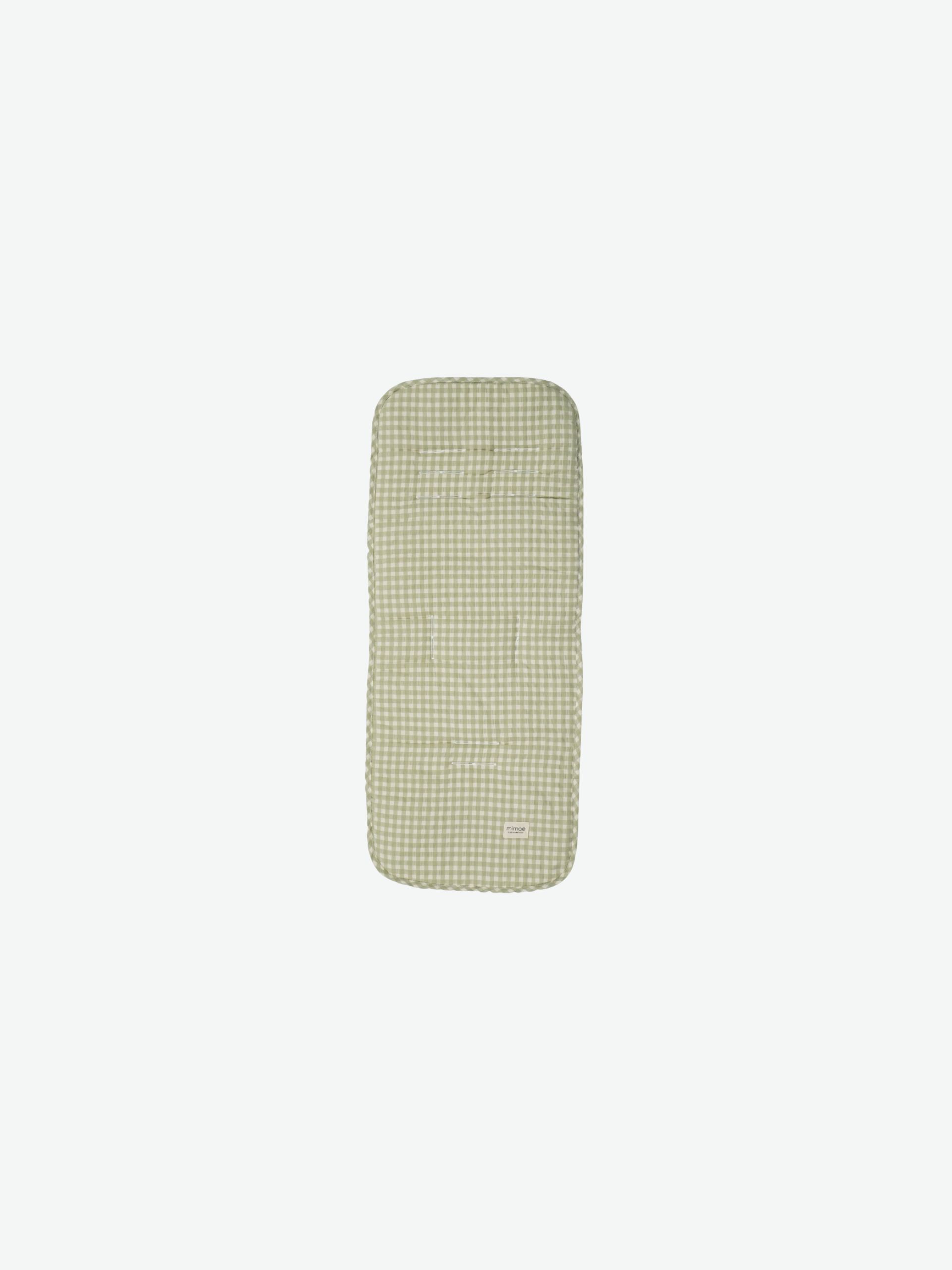 Colchoneta universal para sillas de paseo. Mulliditas tienen una guata de grosor medio y el trasero en tejido Maya 3D acolchado y transpirable. Tienen dos ojales verticales y tres ojales horizontales para que puedan adaptarse a diferentes tipos de silla. Sistema de enganche mediante goma y lazos. Estampado vichy musgo.