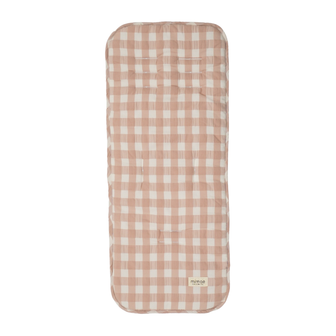 Colchoneta universal para sillas de paseo. Mulliditas tienen una guata de grosor medio y el trasero en tejido Maya 3D acolchado y transpirable. Tienen dos ojales verticales y tres ojales horizontales para que puedan adaptarse a diferentes tipos de silla. Sistema de enganche mediante goma y lazos. Estampado vichy rosa.