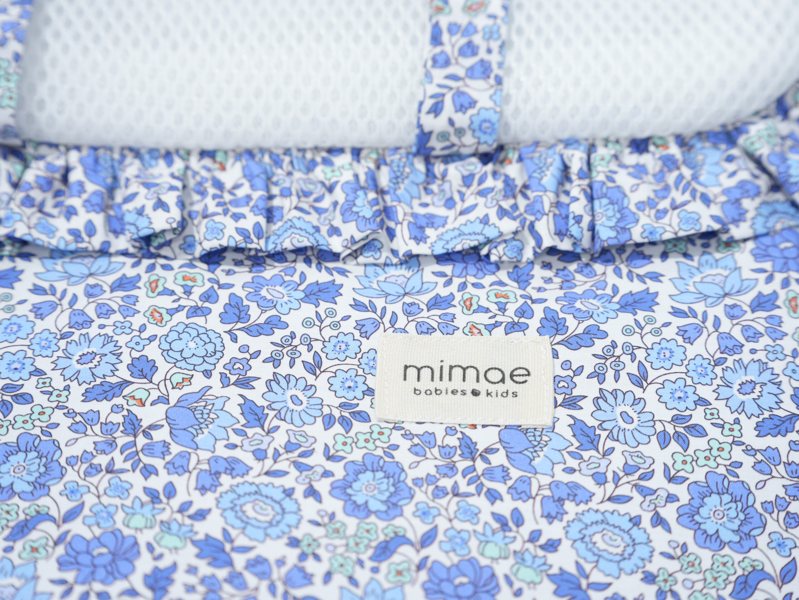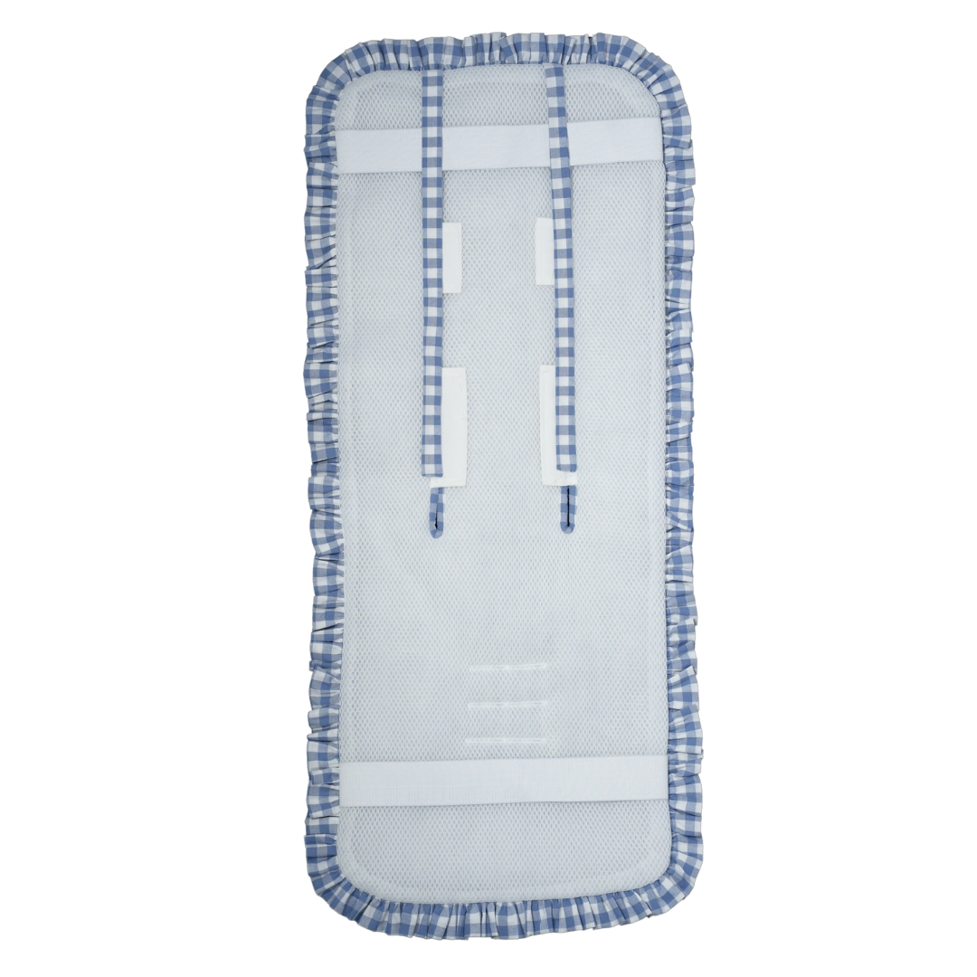 Colchoneta universal para sillas de paseo. Mulliditas tienen una guata de grosor medio y el trasero en tejido Maya 3D acolchado y transpirable. Tienen dos ojales verticales y tres ojales horizontales  para que puedan adaptarse a diferentes tipos de silla. Sistema de enganche mediante goma y lazos. Estampado Azuli con volante Azuli.