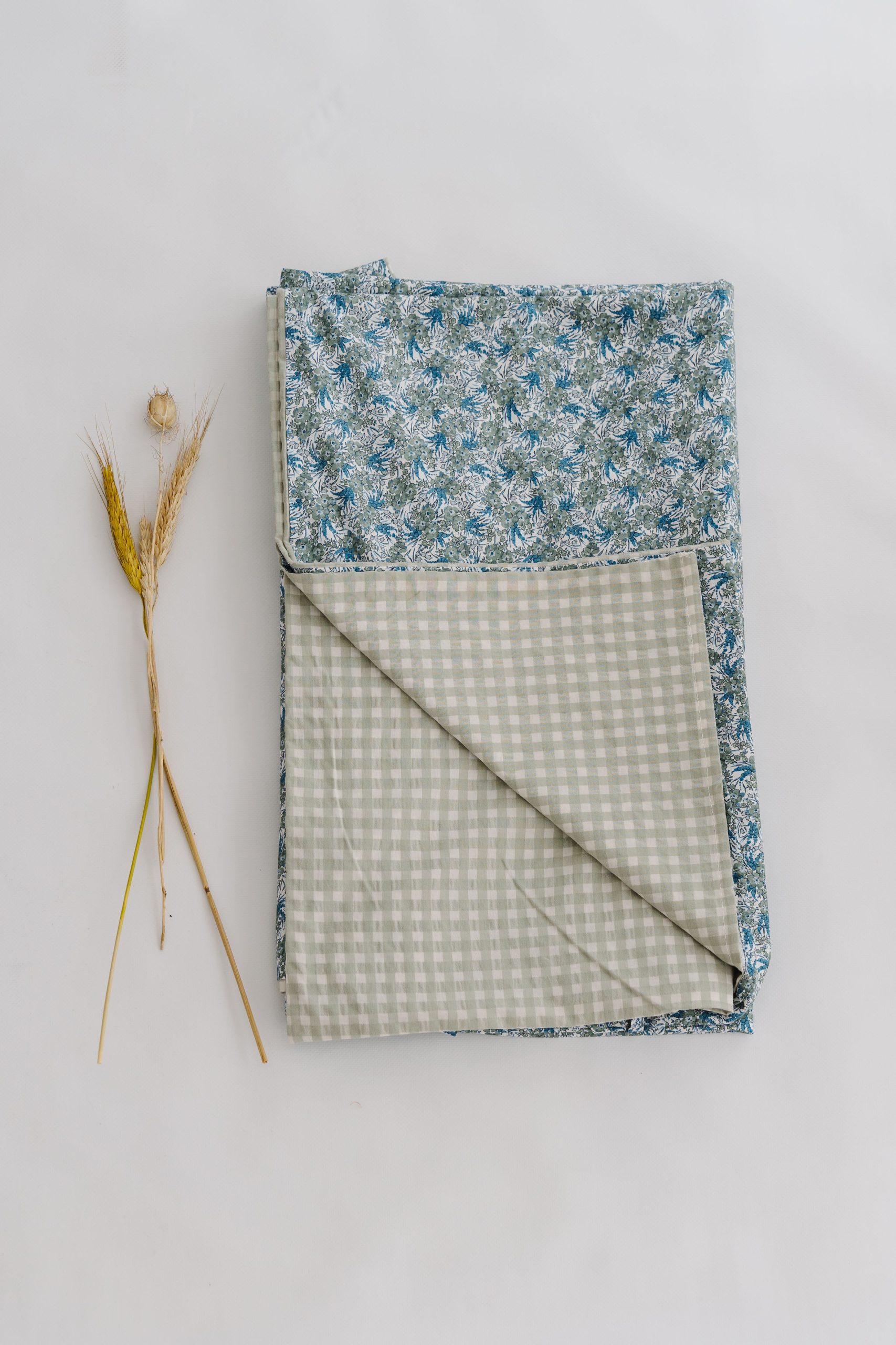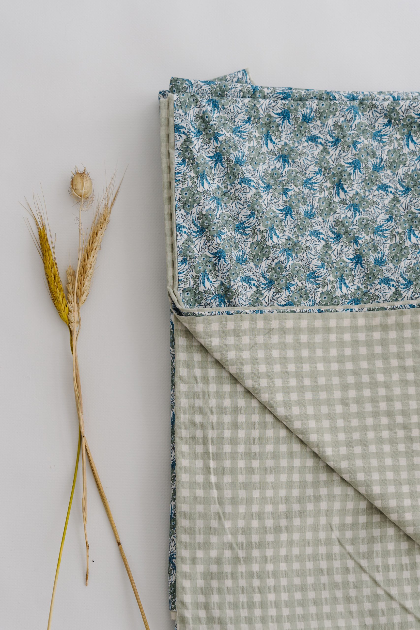 Funda nórdica para camas de 80/90cm. Abertura en la parte de abajo para introducir el relleno deseado, cierre mediante lazo. Confeccionado combinando Liberty Iñaki y Vichy Mint