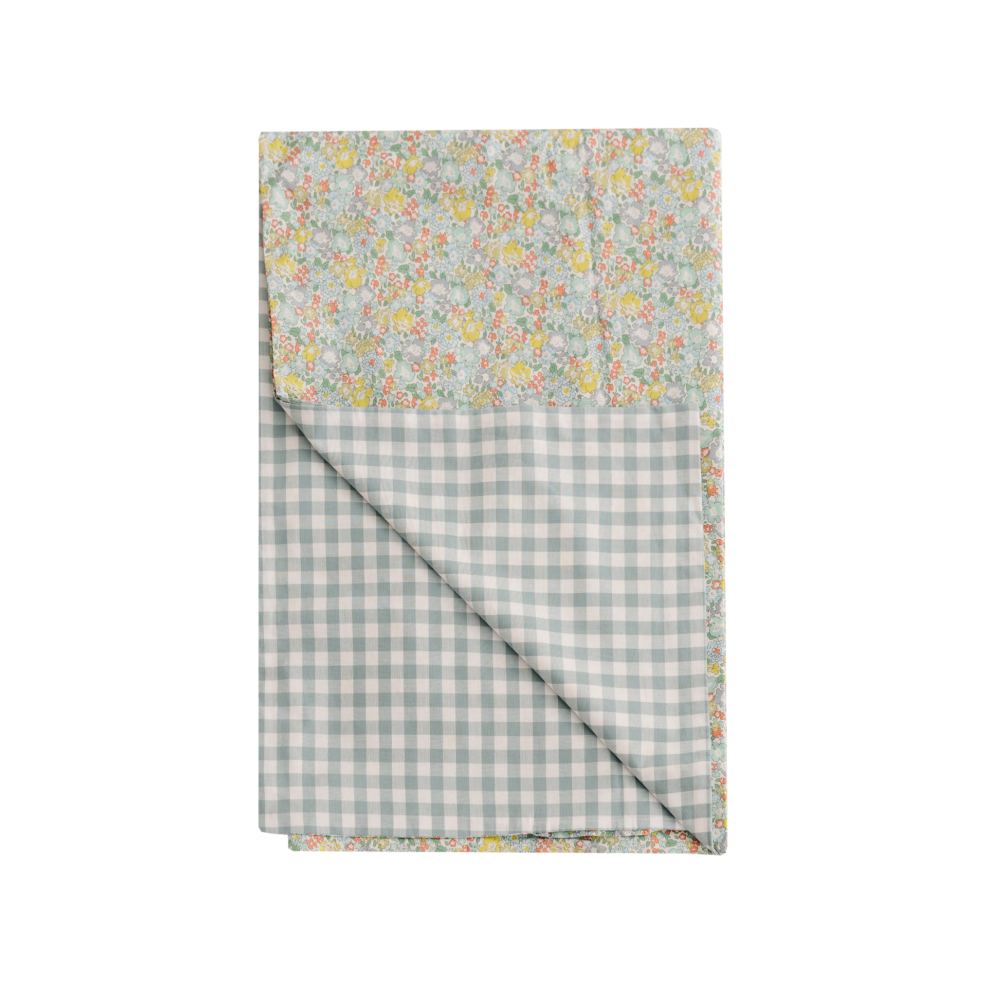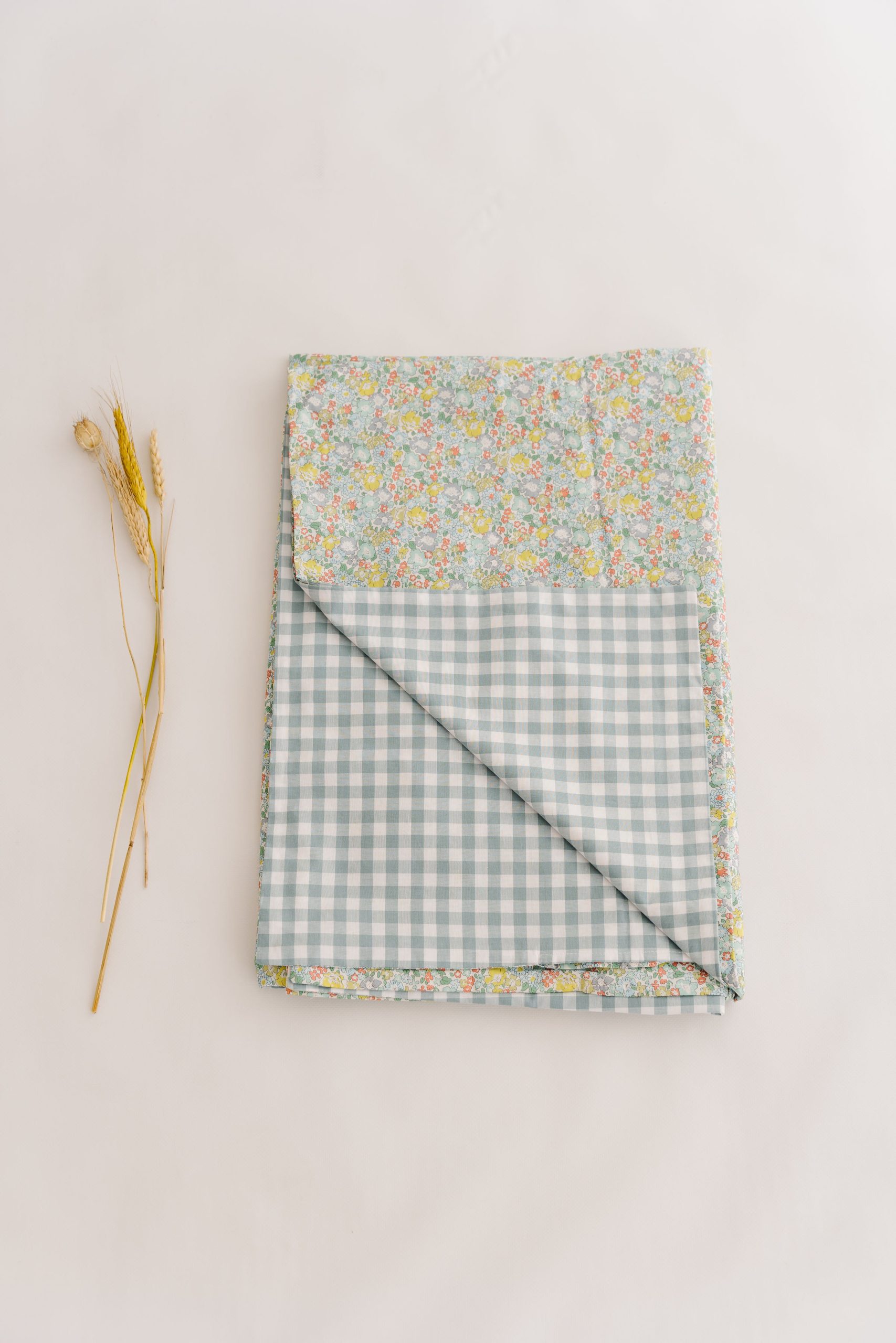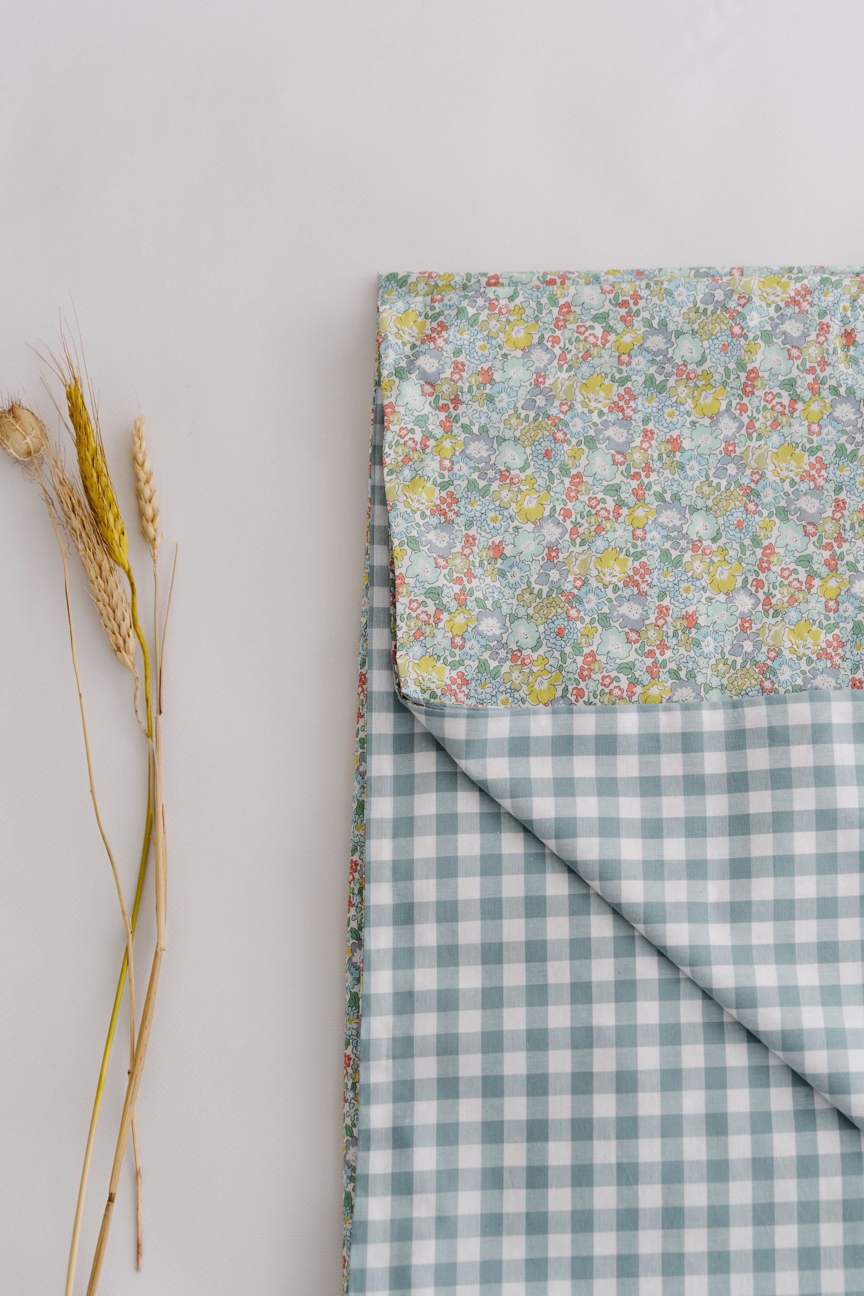 Funda nórdica para camas de 80/90cm. Abertura en la parte de abajo para introducir el relleno deseado, cierre mediante lazo. Confeccionado combinando Liberty Martine y Vichy Mint