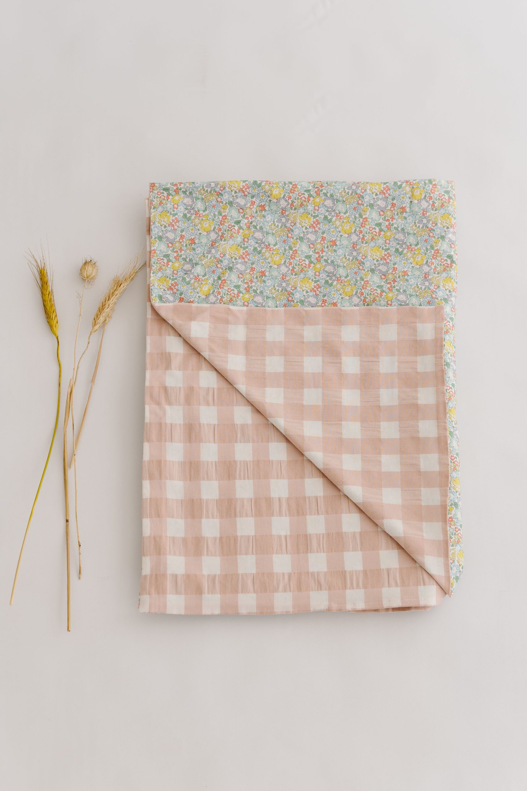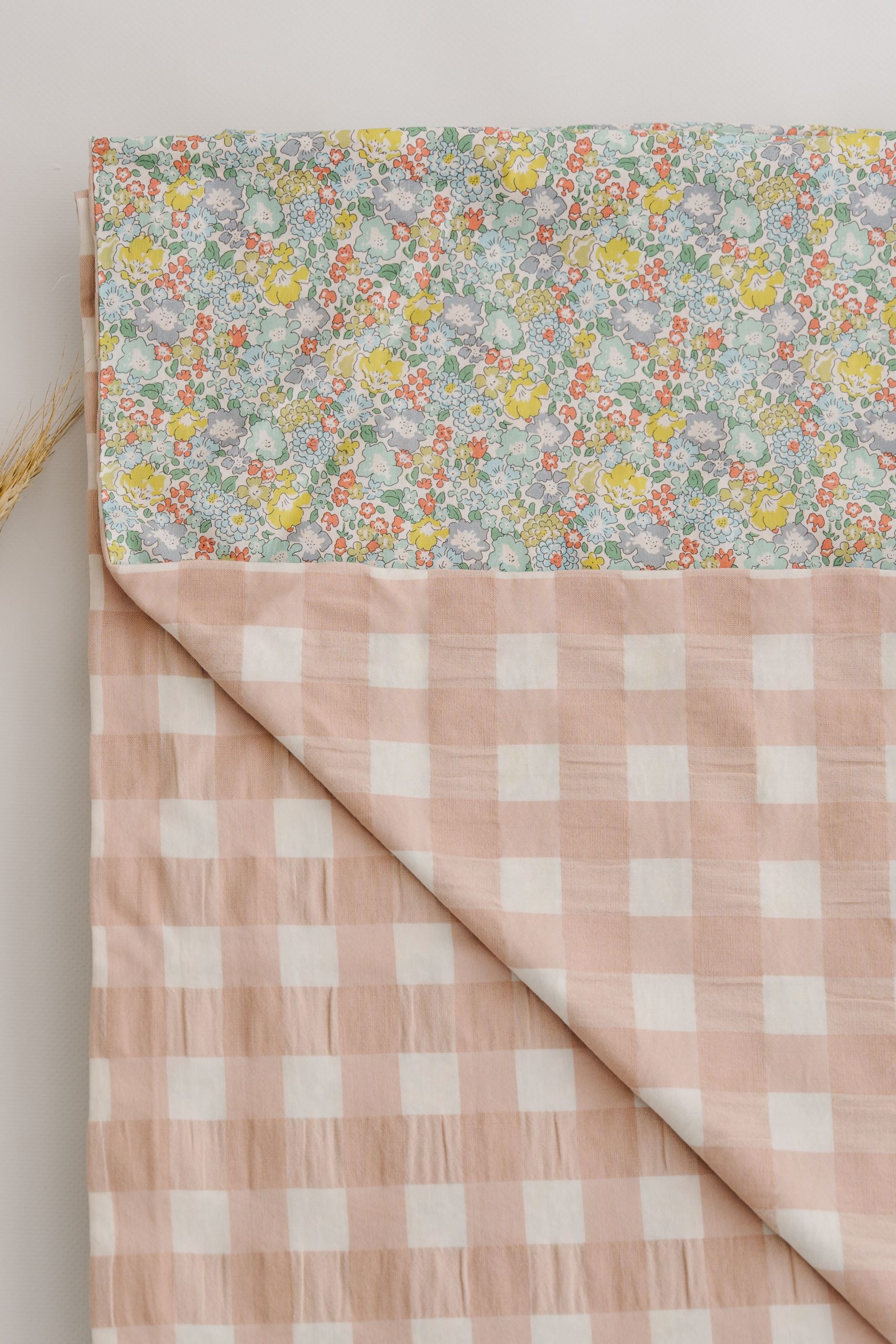 Funda nórdica para camas de 80/90cm. Abertura en la parte de abajo para introducir el relleno deseado, cierre mediante lazo. Confeccionado combinando Liberty Martine y Vichy Rosa