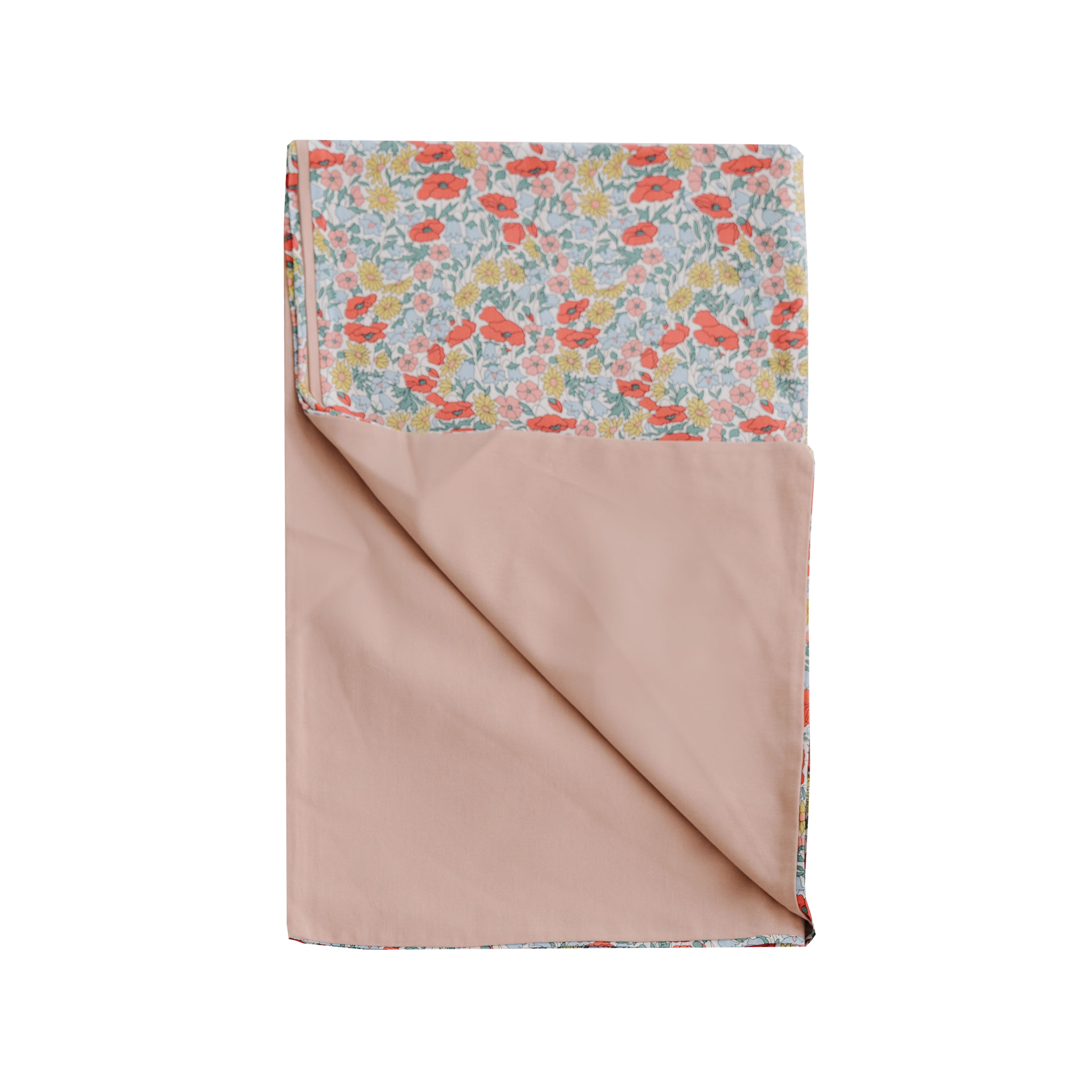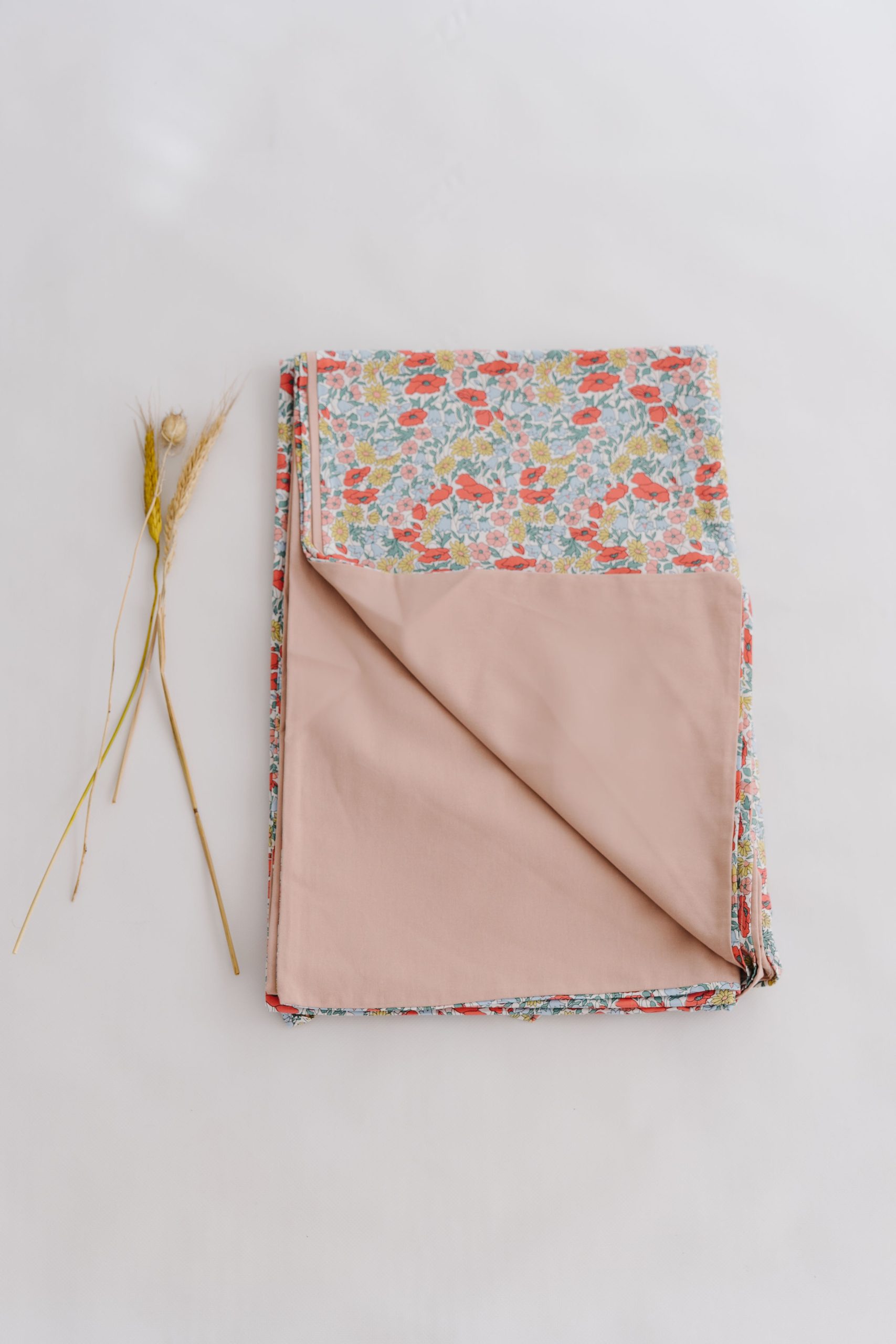 Funda nórdica para camas de 80/90cm. Abertura en la parte de abajo para introducir el relleno deseado, cierre mediante lazo. Confeccionado combinando Liberty y plumeti rosa