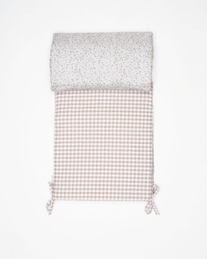 Conjunto para cuna de 120×60 cm, confeccionado en tejido Matilda combinado con vichy menta. Ambas piezas son reversibles y la chichonera incluye un relleno de guata gordito para proteger al bebé de posibles golpes. Dispone de cremallera para extraer fácilmente la guata y lavar la funda con comodidad. Suave, seguro y con un diseño encantador.