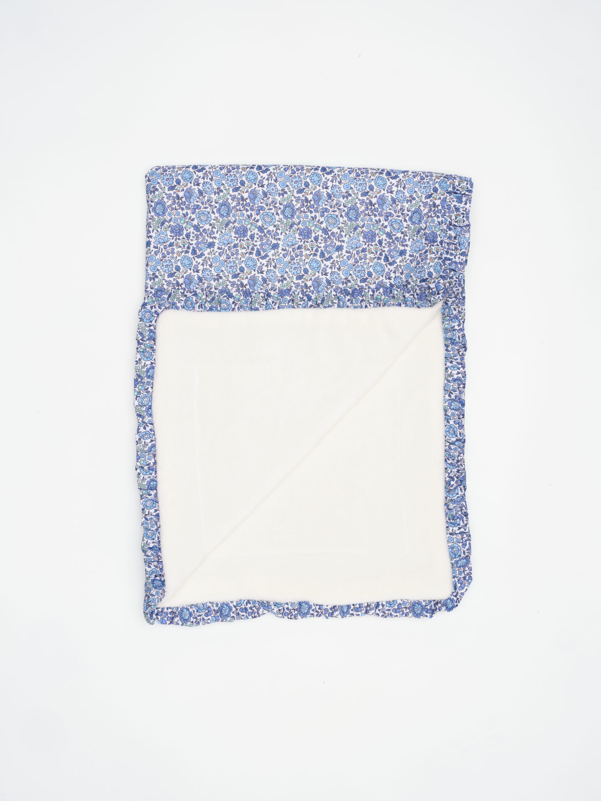 Nuestras mantas de pelito son super gustosas y están mulliditas con una guata fina para que mantenga bien la temperatura del bebé. Rematado con volante Azuli.