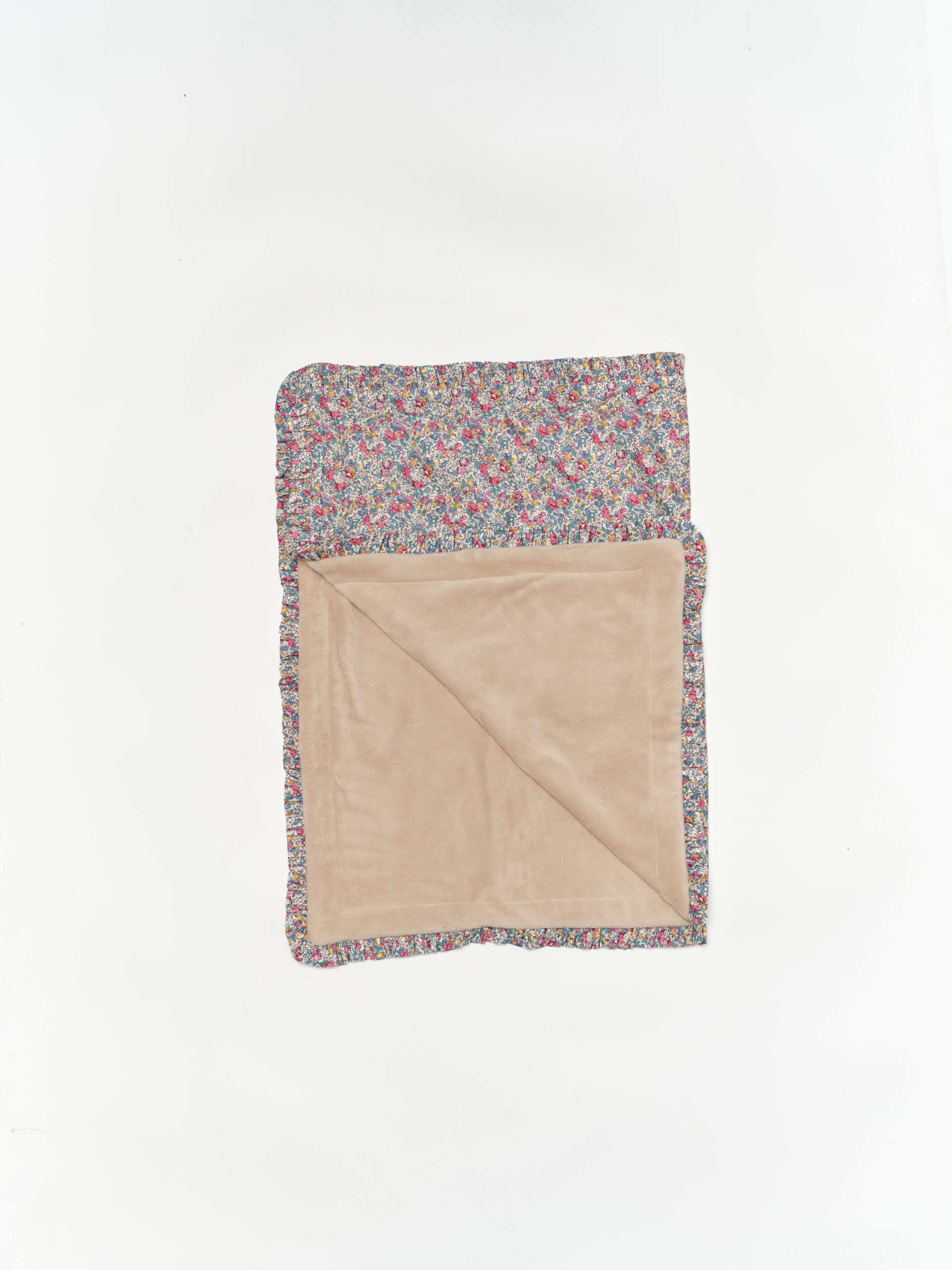 Nuestras mantas de pelito son super gustosas y están mulliditas con una guata fina para que mantenga bien la temperatura del bebé. Rematado con volante. Estampado Matilda