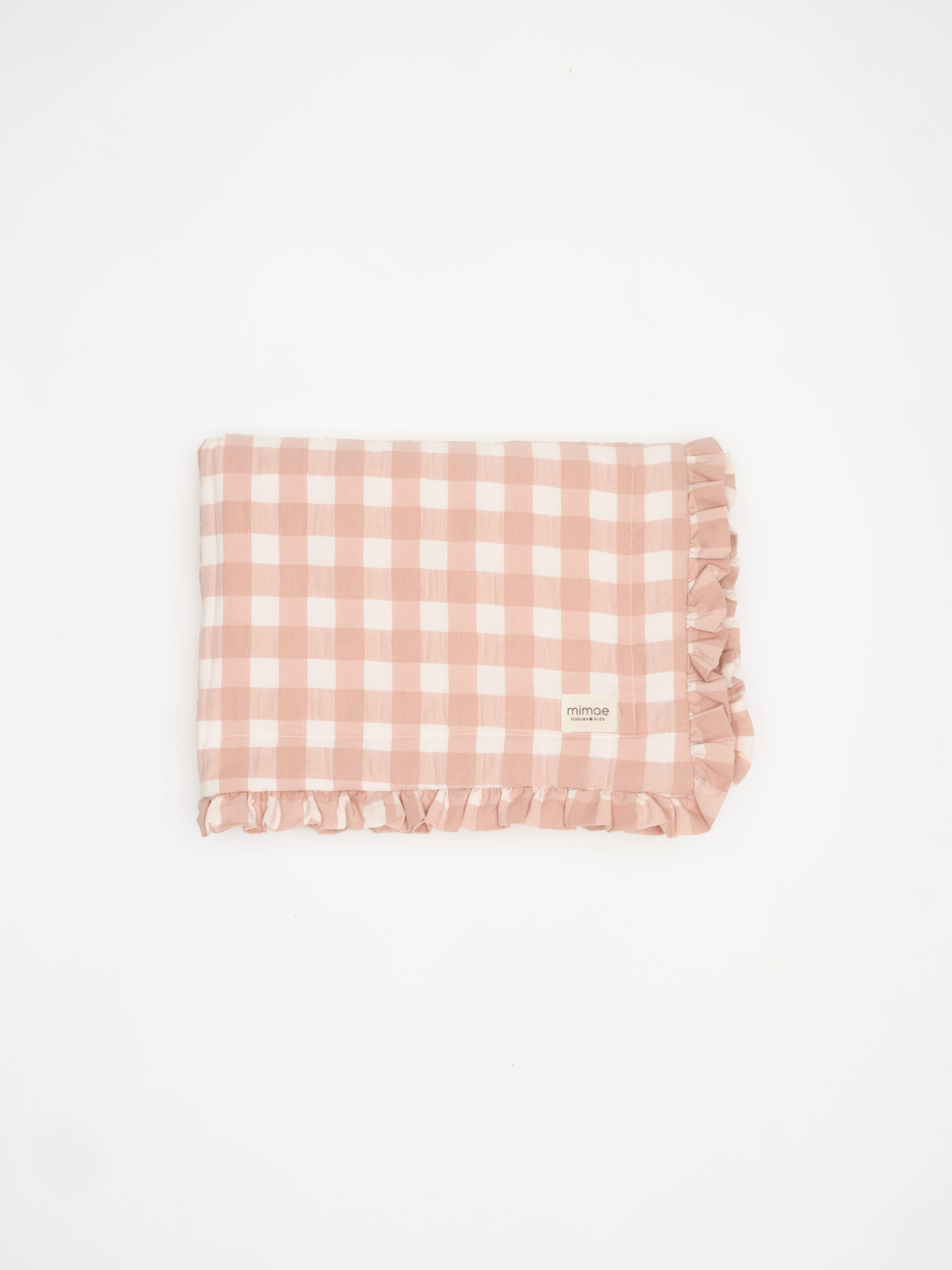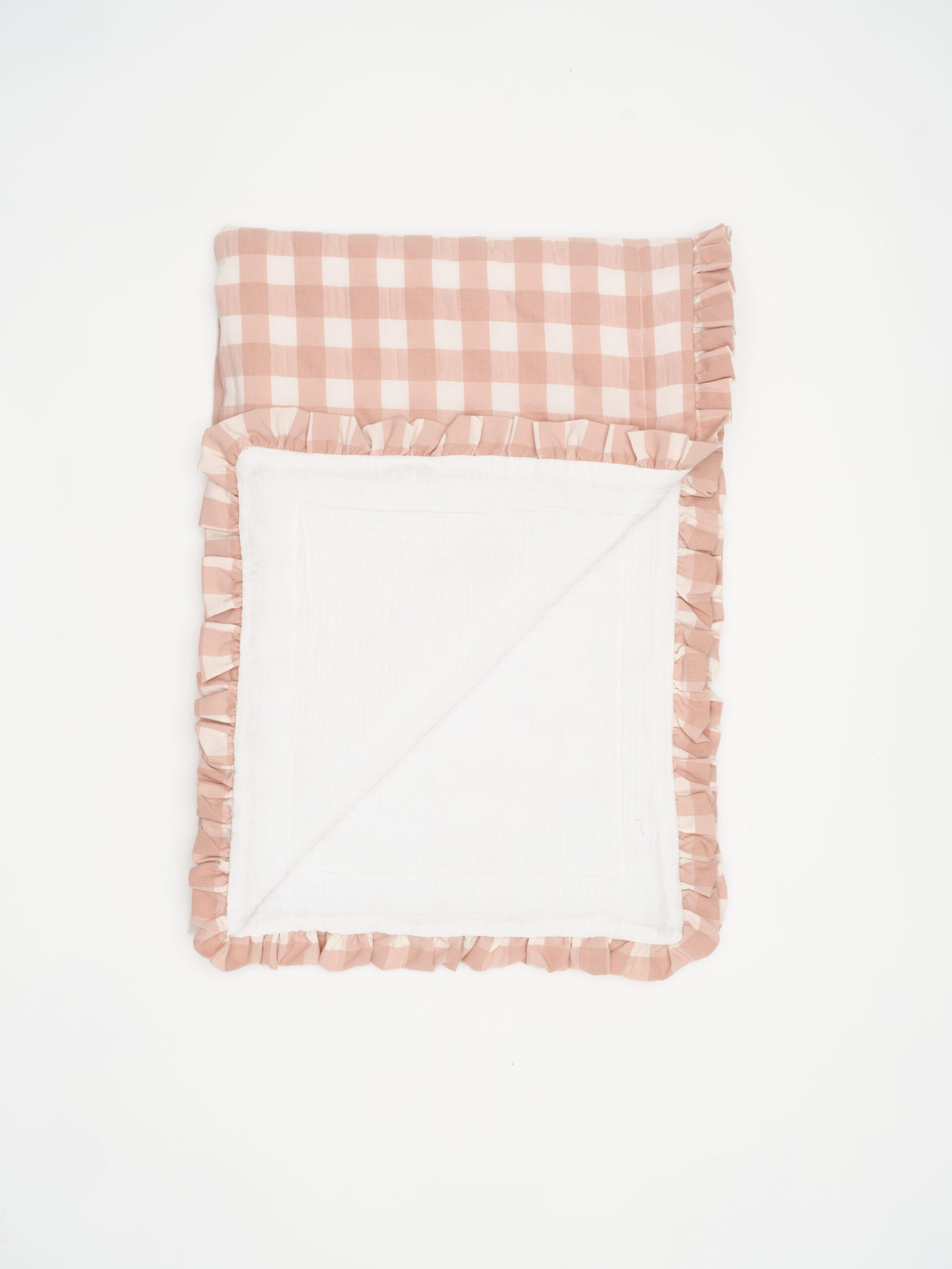 Nuestras mantas de algodón están mulliditas con una guata fina para que mantenga bien la temperatura del bebé. Por un lado estampado Vichy Rosa y por el otro bambula cruda.Todo rematado con volante.