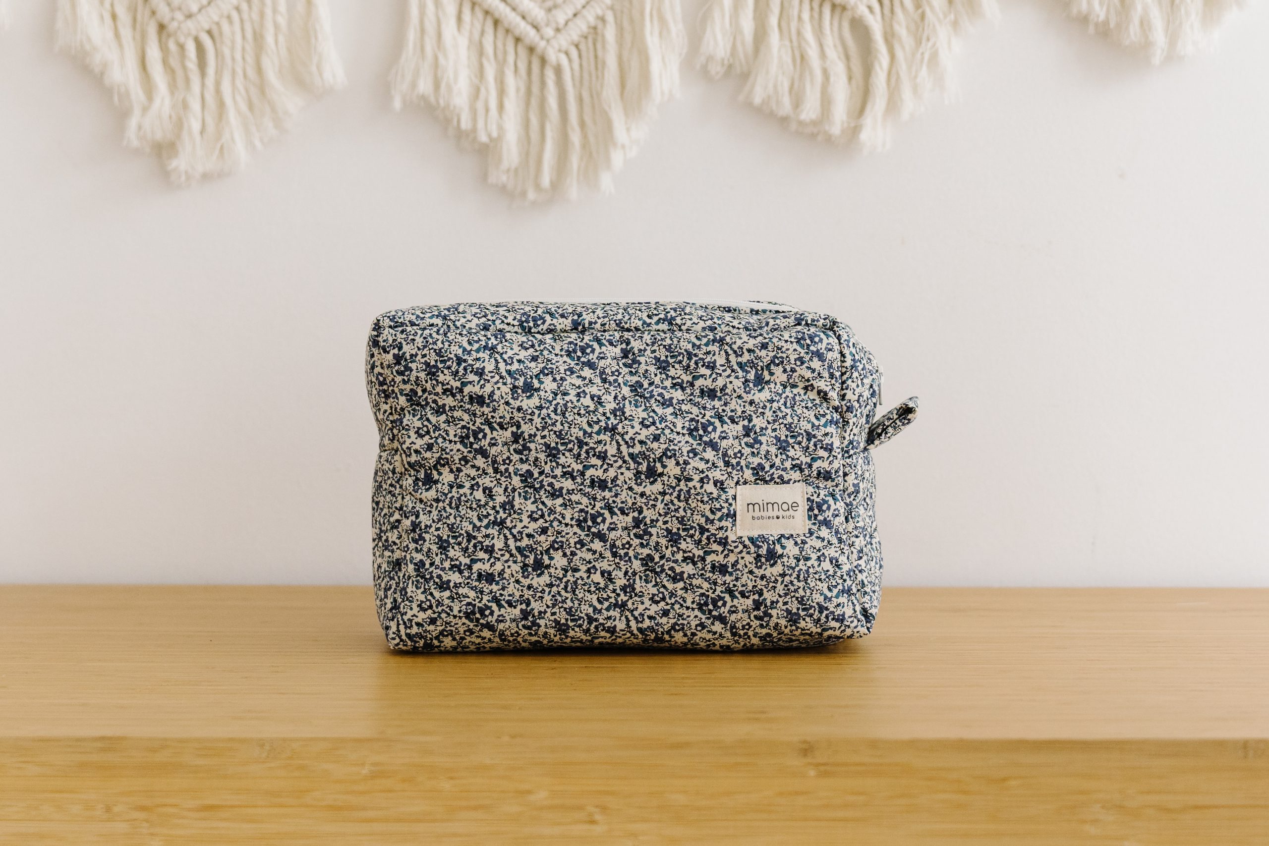 Nuestros neceseres tienen el tamaño perfecto para guardar todo lo necesario para nuestro bebe. Acolchados con una guata de grosor medio, están forrados con  algodón orgánico y se cierra con cremallera. Además entre el forro y la guata tiene un tejido impermeable para que el bolso no se empape si se derrama algún líquido. Estampado Liberty Paul.